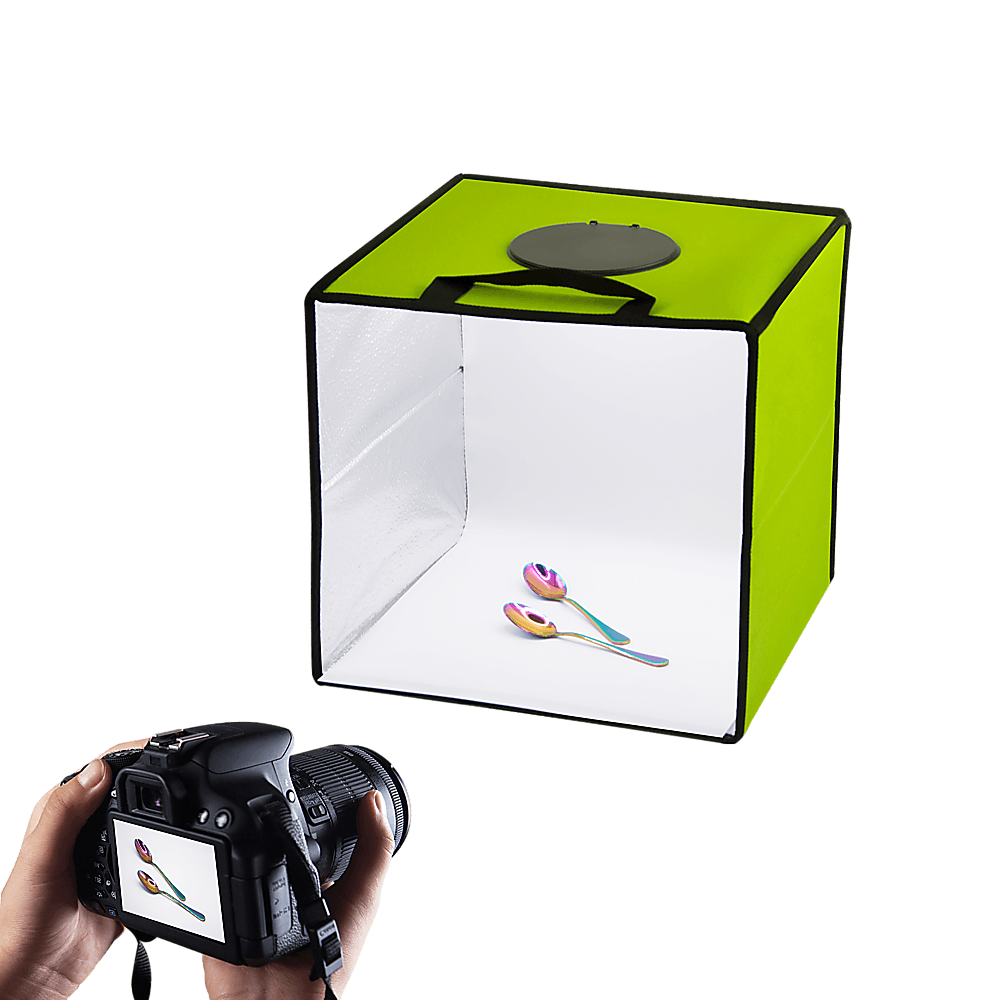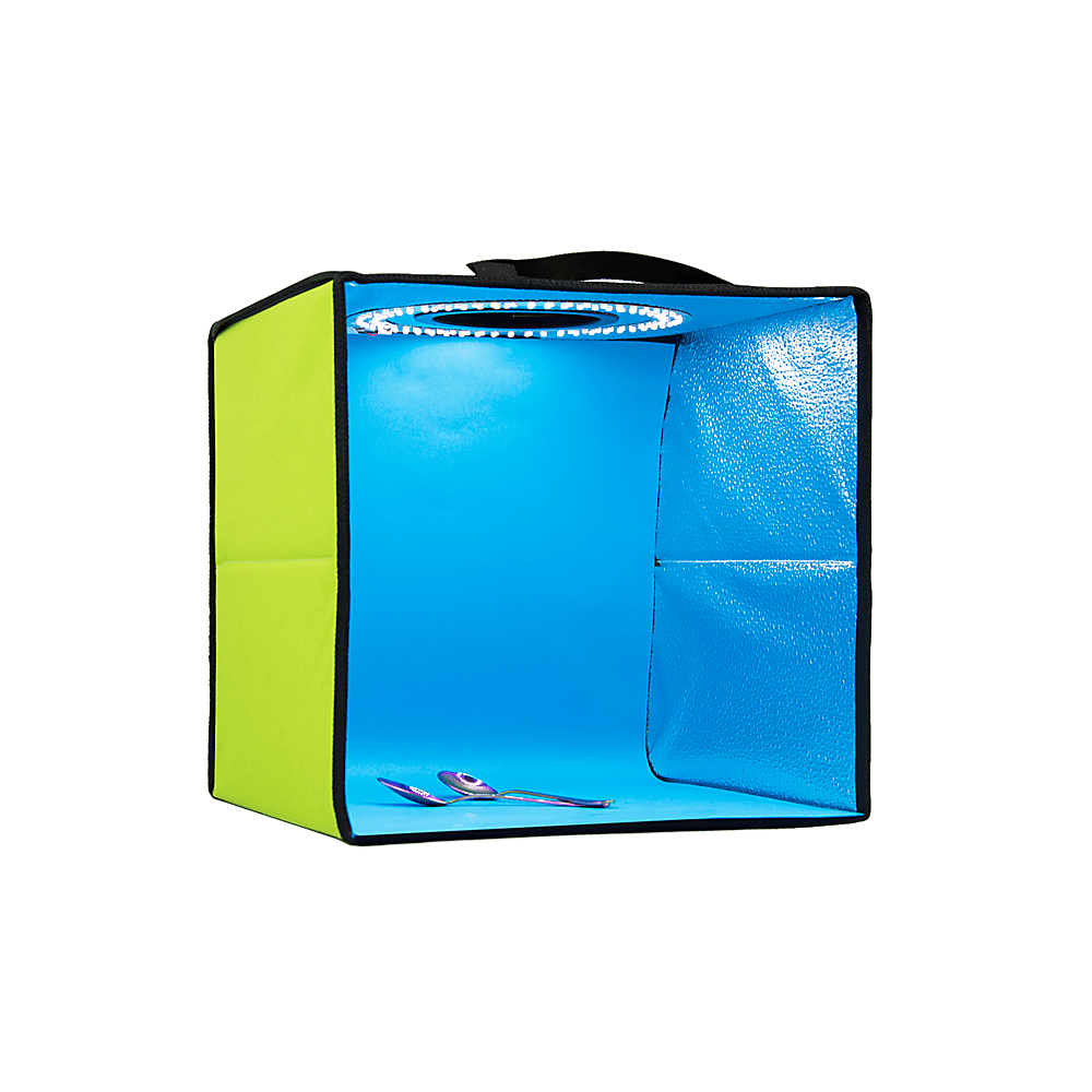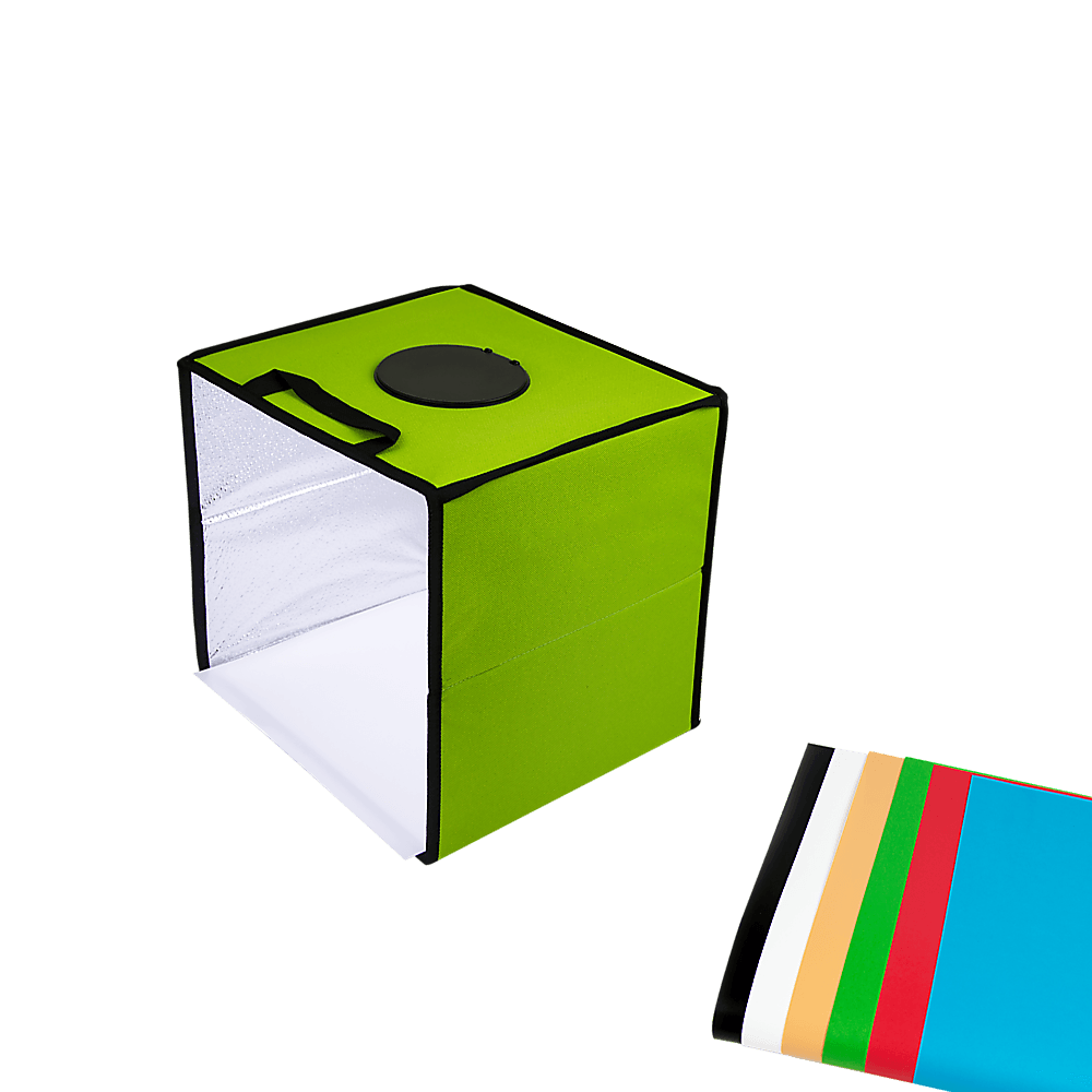 It's easy to assemble in only a few seconds, so you can get it up and running in no time. And, it folds up so it's easy to carry everywhere you go. With its built-in LED light, it provides optimum lighting, reducing shadows and reflections. Its stone-grain fabric gathers light, distributing it throughout the box with a three-dimensional effect to highlight your photo's subjects.