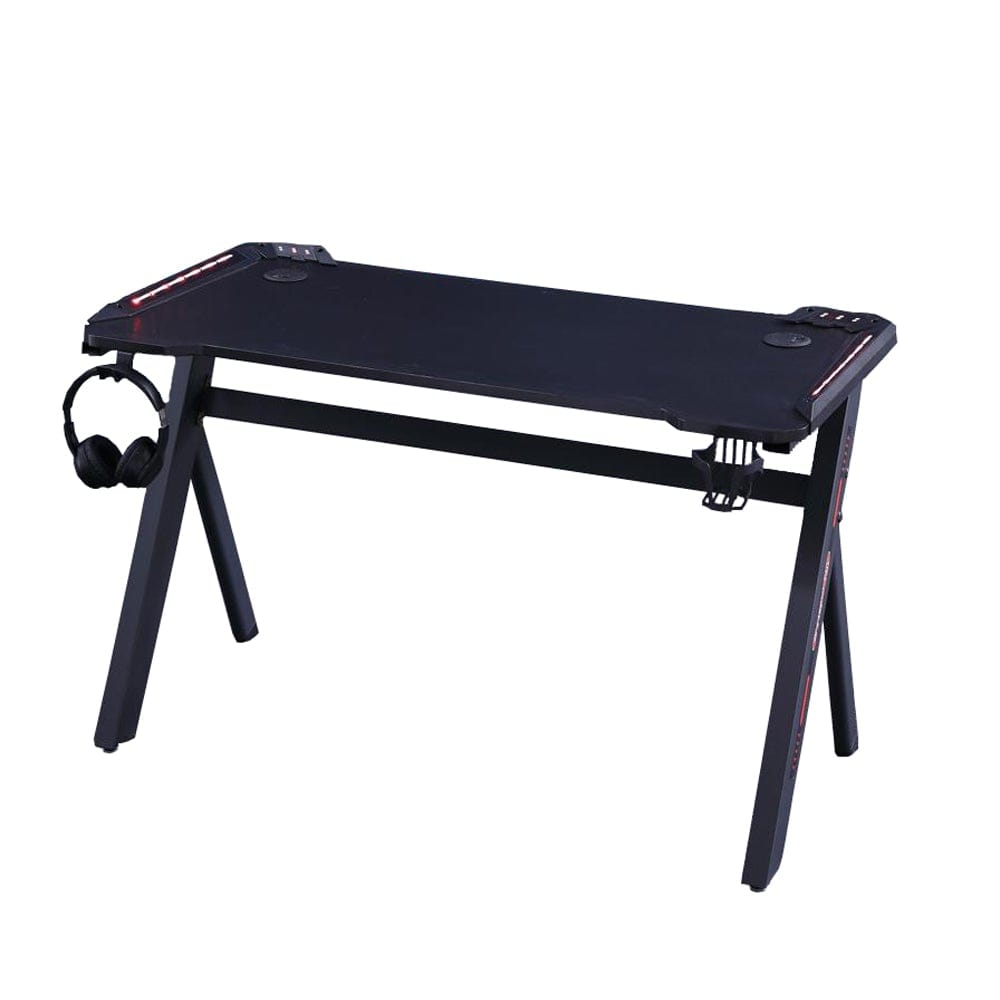 Our Gaming Desk features a spacious tabletop for ultimate gaming gear. Carbon fiber surface features with a smooth and gorgeous texture. The ergonomically contoured desktop allows a closer distance to the gaming screen. With its different shaped legs, it provides an extremely steady construction which has a 100kg high bearing capacity. Moreover, reinforced braces, round edges, and floor protector to enhance its premium quality details. Get your game on with our stylish gaming desk.