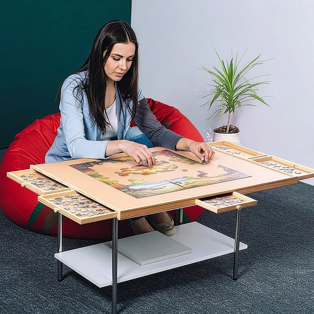 1500 Piece Rotating Wooden Jigsaw Puzzle Table 6 Drawers Board