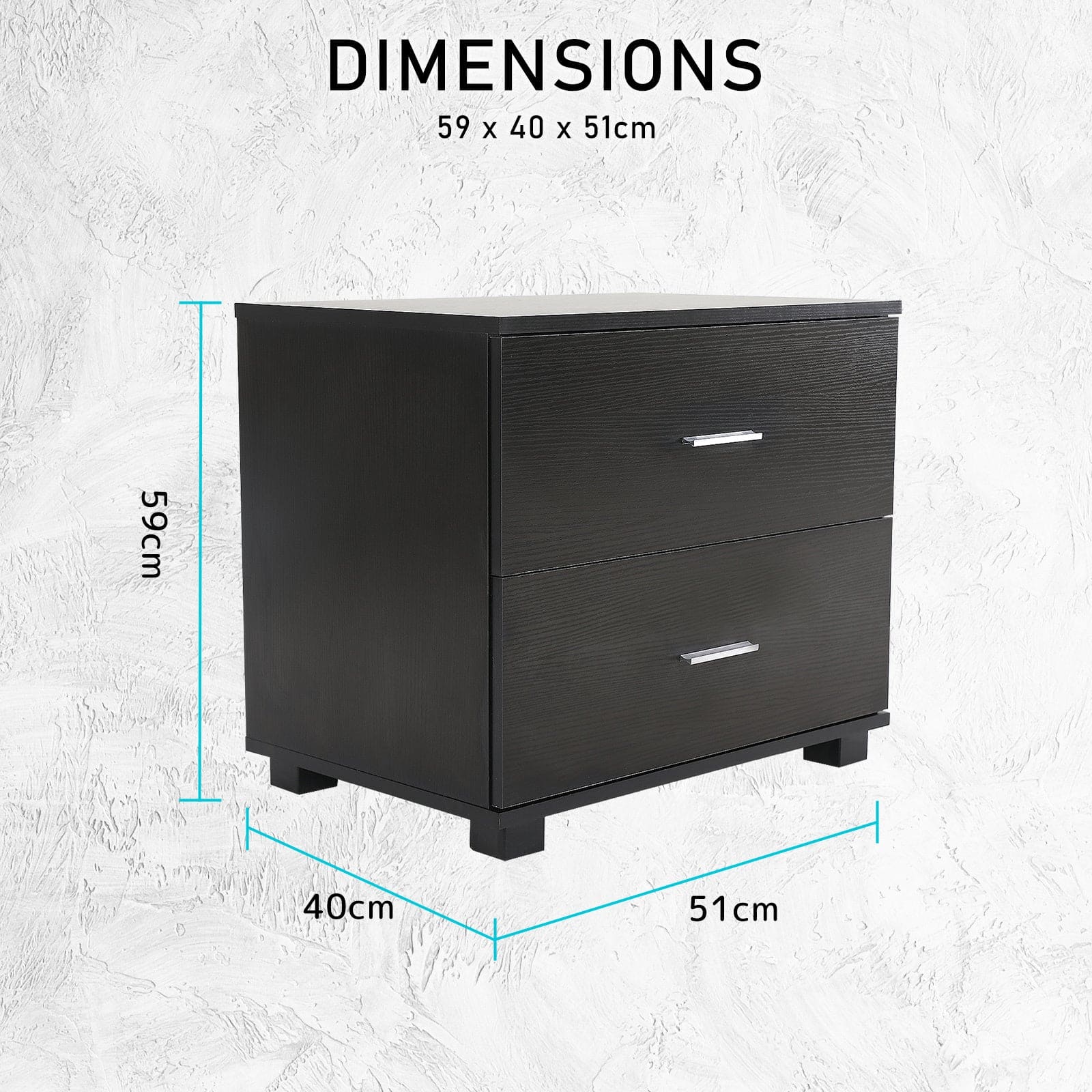 2X Bedside Table Side Storage Cabinet Nightstand Bedroom 2 Drawer ETTA BLACK