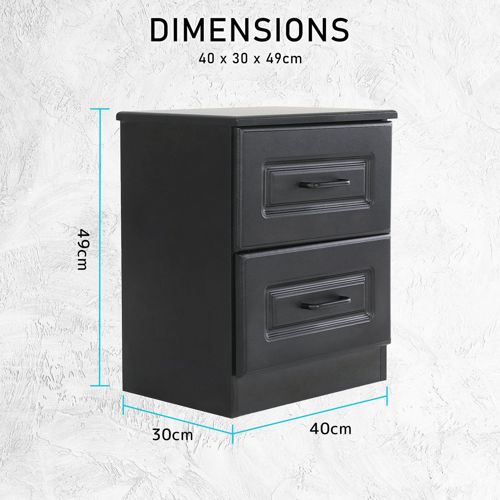 2X Bedside Table Side Storage Cabinet Nightstand Bedroom 2 Drawer KEVA BLACK