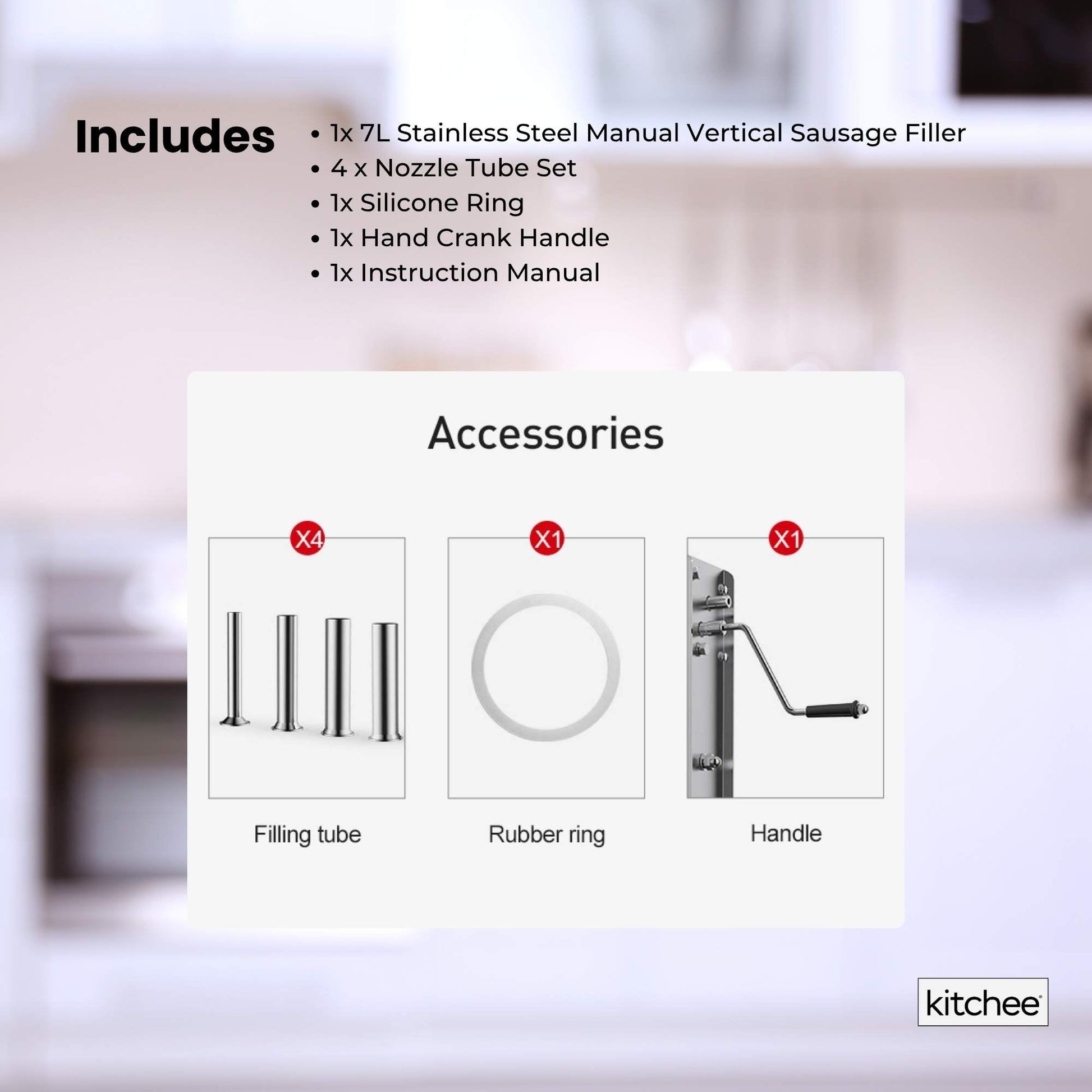 - 1x 7L Stainless Steel Manual Vertical Sausage Filler