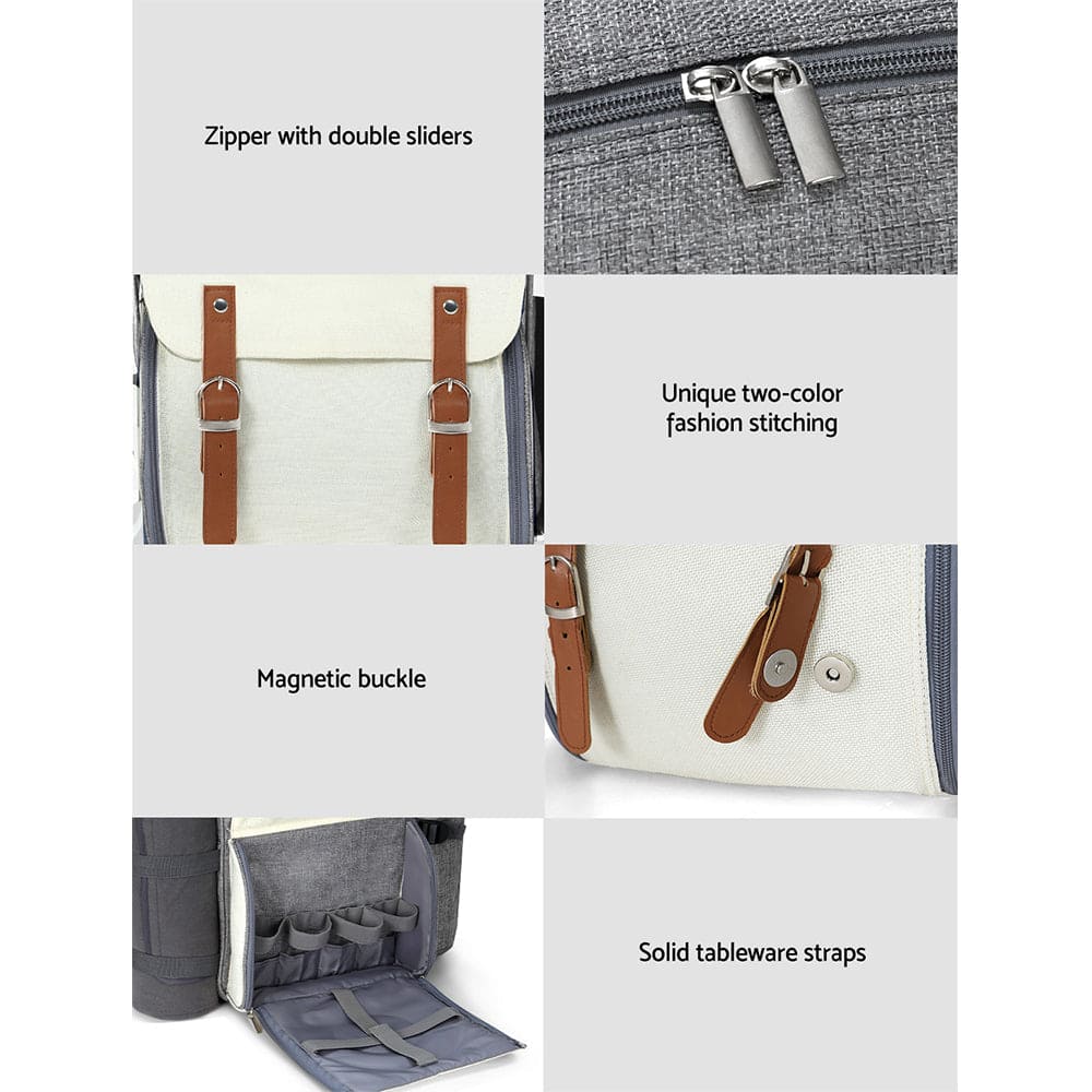 Alfresco 4 Person Picnic Basket Set Backpack Bag Insulated Grey
