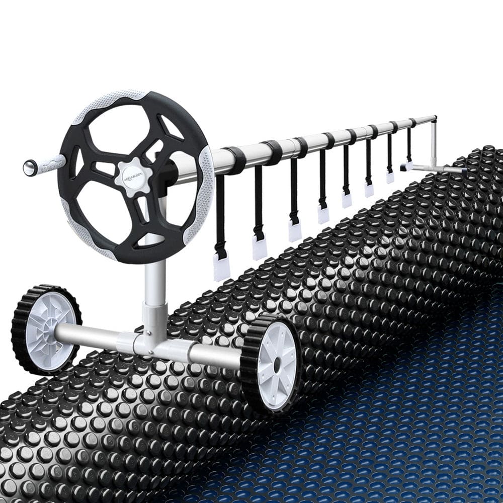 Keep your pool clean from debris and warm from the power of the sun with Aquabuddy's Aluminium Pool Roller and 8.5m x4.2m Pool Cover. Made of sturdy aluminium construction with full adjustability, this pool roller is suitable for pool cover with a width between 2.4m-5.55m. It is equipped with premium anodized aluminium alloy telescopic poles, plastic wheels for maximum portability, and a low friction crank wheel to easily roll up your pool cover and get right in the water. The solar pool cover is made from premium low-density 600 micron polyethylene, which makes it extremely durable. The blue top and black underside allow the sun's rays to penetrate the pool, increasing the temperature and significantly reducing water evaporation. Finally, the cover keeps the pool water clean all year round, reducing the time spent maintaining the water, pumps and filters. Get the best of natural resources and save money on chemicals and water; get yourself an Aquabuddy Pool Roller and Cover set today!