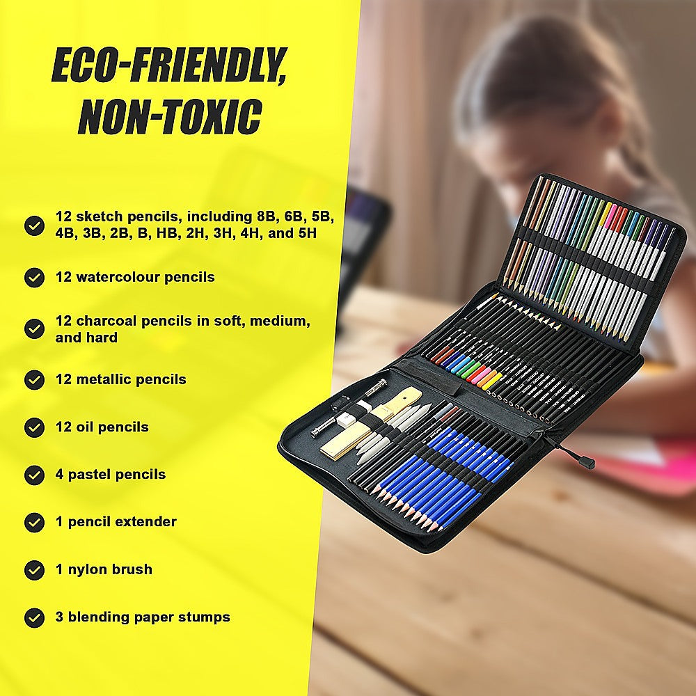 Crafted from eco-friendly, non-toxic wood and other natural materials, this set is a great gift for artists of all ages even children. It has everything you need just pull out your paper or other media and start drawing. It even comes with a zippered organiser pouch with compartments to store each pencil or accessory in its own place. It's perfect for taking along on holiday, so you can capture the great outdoors in an original work of art. Whether you're a professional artist or a beginner or somewhere in between this versatile pencil set is all you need to create your masterpiece. If you have an artist in your family or circle of friends, this pencil set is the perfect gift. Order yours today!