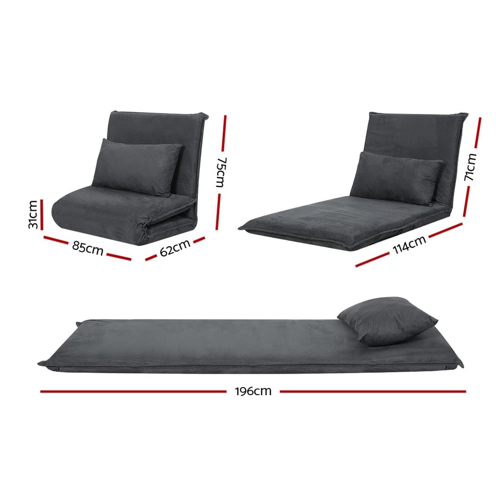 Forget about beanbags! The Artiss floor lounge sofa makes a perfect piece of furniture for chilling with friends. It allows you to create a beautiful and cosy sitting space anywhere effortlessly. So if you're tired of blow-up mattresses or uncomfortable beanbags, then you'll love our floor lounge. Our floor lounge is all about comfort, versatility, and beauty. It comes in gorgeous charcoal that will complement any space. Plus, its soft cushioned seat makes it quite comfortable to relax. Our floor lounge sofa features heavy-duty steel frame with premium microfibre fabric for durability and comfort. It boasts a convenient foldable design that enables you to fold it when not required. This makes it perfect for small spaces. Our floor lounge sofa can be adjusted into different positions for added comfort and convenience. You can use our floor lounge in different ways: lie on it, sit on it, or relax with your legs stretched. Great for movie marathons, sleepovers, gaming nights, or simply for snuggling. Purchase this versatile floor lounge today.