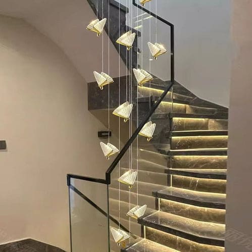 BAMDECOR LED Modern Bedroom Bedside Creative Butterfly Hanging Chandelier Light Fixtures for Stairs Nordic Decoration (12Heads)