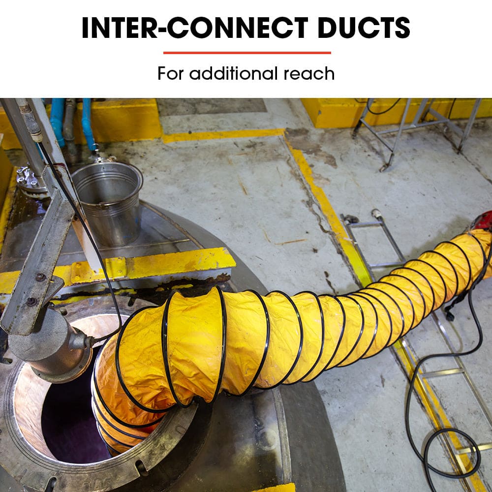 This Baumr-AG Ventilator Fan is ideal for improving air quality in confined spaces. The 10m heat resistant PVC duct is designed to withstand extreme temperatures ranging from -20C to 80C and easily fits over the flanges to efficiently provide fresh air or to extract dust and fumes. This versatile multipurpose fan can also serve many other industrial uses such as drying hard surfaces and carpet or cooling workers or machinery.;