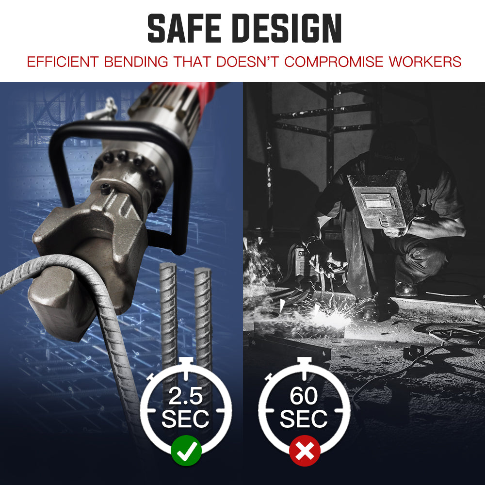 The demanding nature of Rebar bending means it's vital that quality tools are used to do the job safely and efficiently. Baumr-AG's range of reo bar bending equipment certainly fits the bill. The commercial-grade Baumr-AG RB16B Hydraulic Rebar Bender is a must have for any builder with its tough body with a very portable weight of 14kg. The front and rear handle configuration allows it to be maneuvered into confined spaces, and the front handle is designed to conveniently suit either right or left-handed operation.