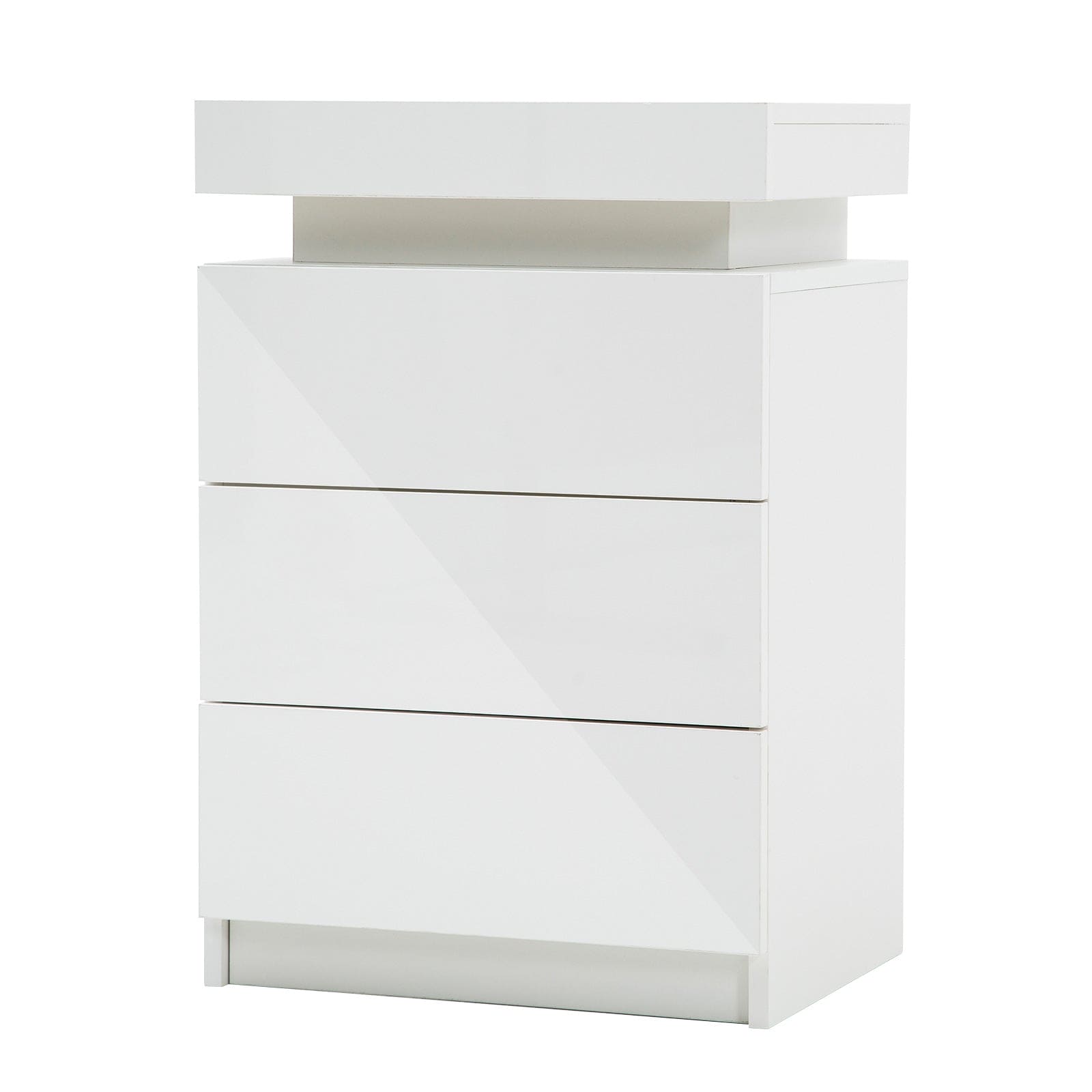 Bedside Table 3 Drawers RGB LED Bedroom Cabinet Nightstand Gloss GLORY WHITE