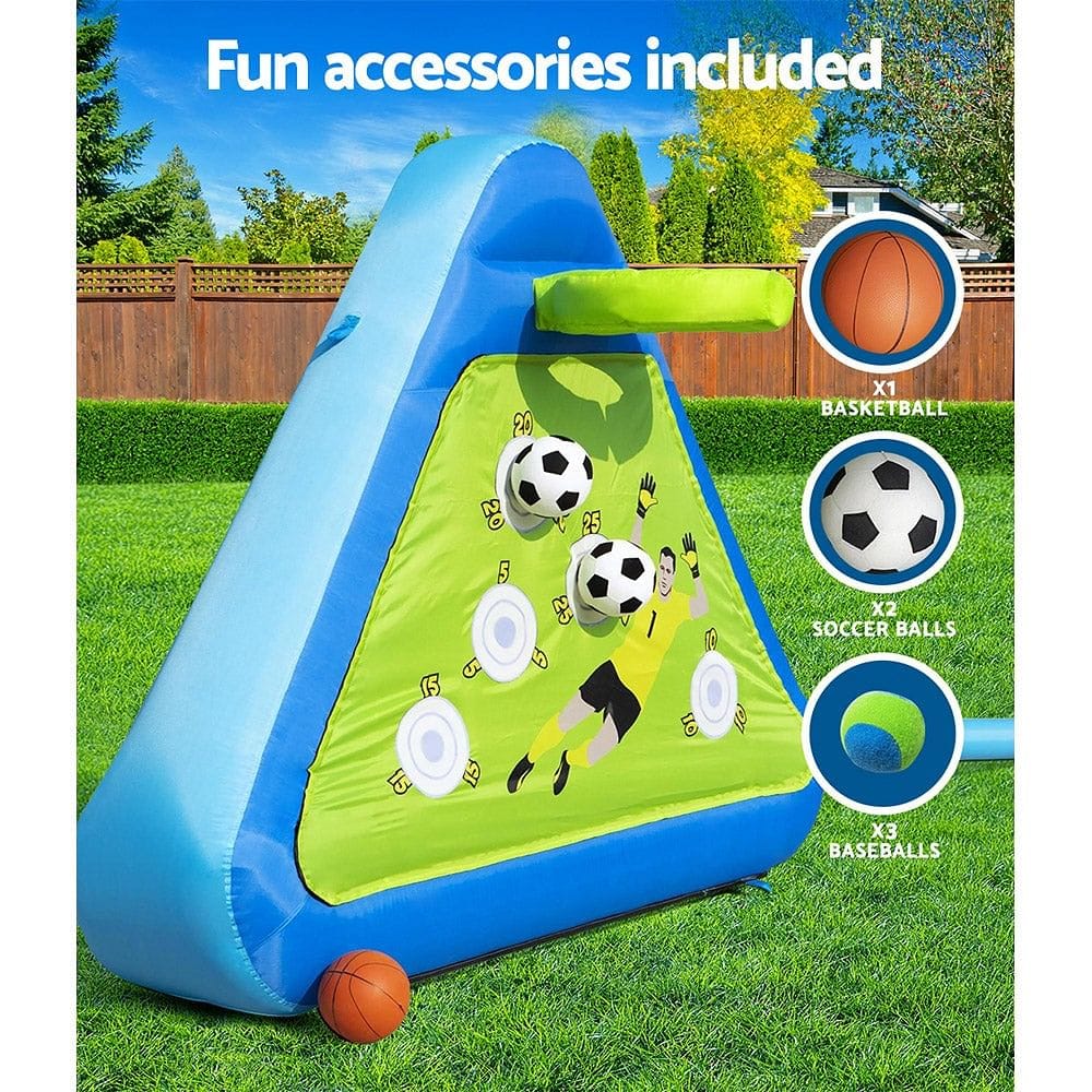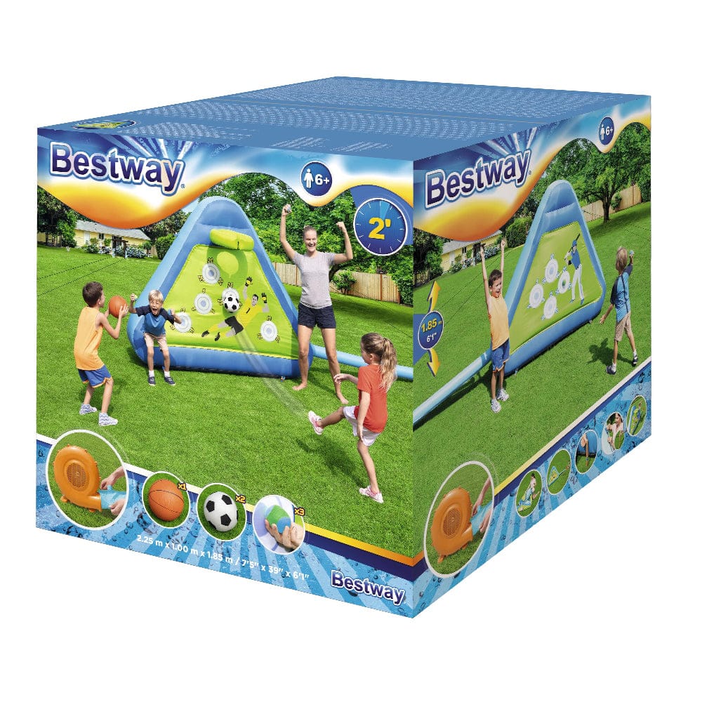 For the win! The Bestway® Triple Play Sports Board is certainly three times the fun. Basketball, baseball and soccer! With three ways to play, kids can work on perfecting their athletic skills along while improving their hand-eye coordination. Better still, the sports board comes with marked scoring for soccer games. Or dunk the basketball and practice three-pointers with friends. Not least, hit a ‘home run’ right in your own backyard. You can also create your own challenges and games by incorporating all three sports! Setting up the sports board is quick and easy with the included blower in less than two minutes. As for durability, the sport board is designed for robust play with its double-stitched polyester material construction.