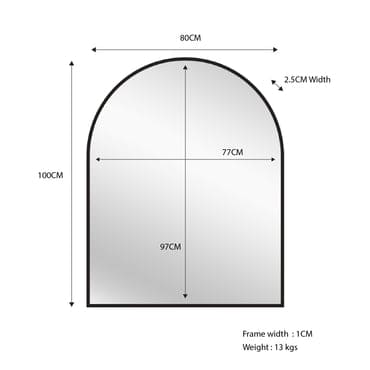 Black Metal Arch Mirror - Small 80cm x 100cm