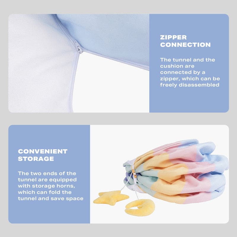Creative Design: Our cat bed rainrow tunnel is combination pet bed and cat tunnel, built-in star toy, this bed gives your cat a cozy space to play, relax and rest, keeping your cat entertained for long hours.