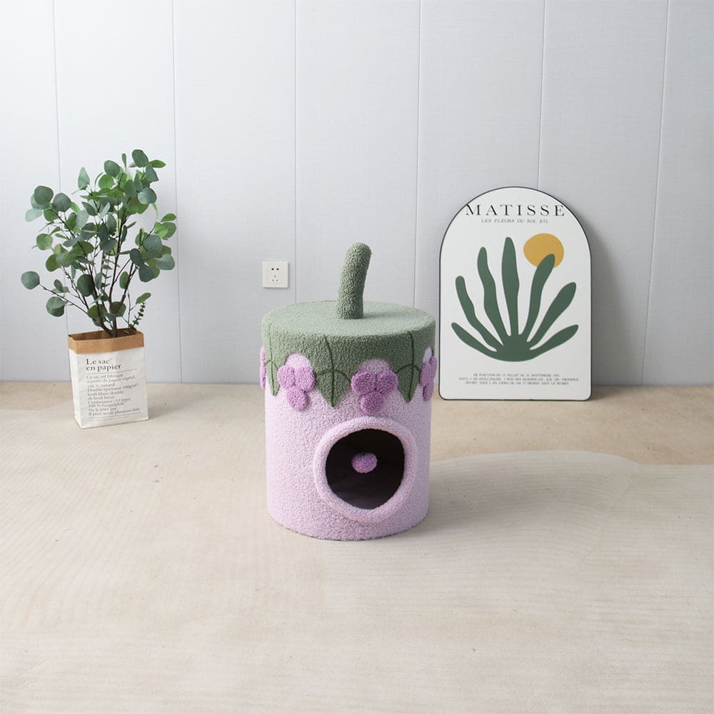 Step into a world of purr-fection with CATIO Purple Grape Cat House. This enchanting retreat offers a safe and cozy space where your cat can unwind, snooze, and find ultimate comfort. The round entrance leads to a secure haven adorned with different shades of purple, evoking a touch of magic in your home decor.