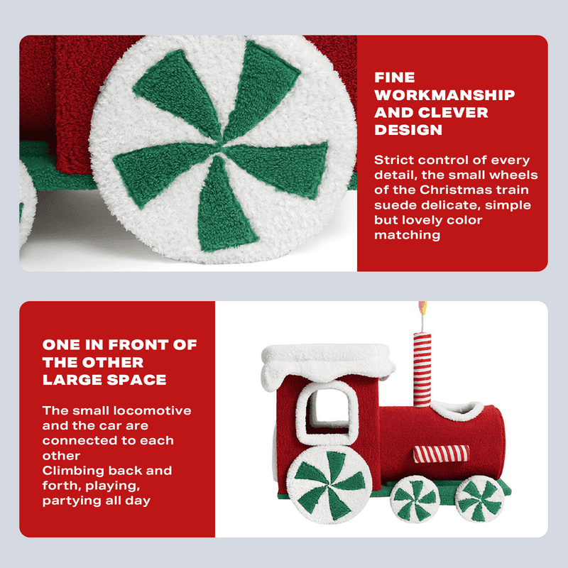 This Xmas train cat tree is a magic castle, park and cosy nest for your beloved cat. It is suitable for kittens.