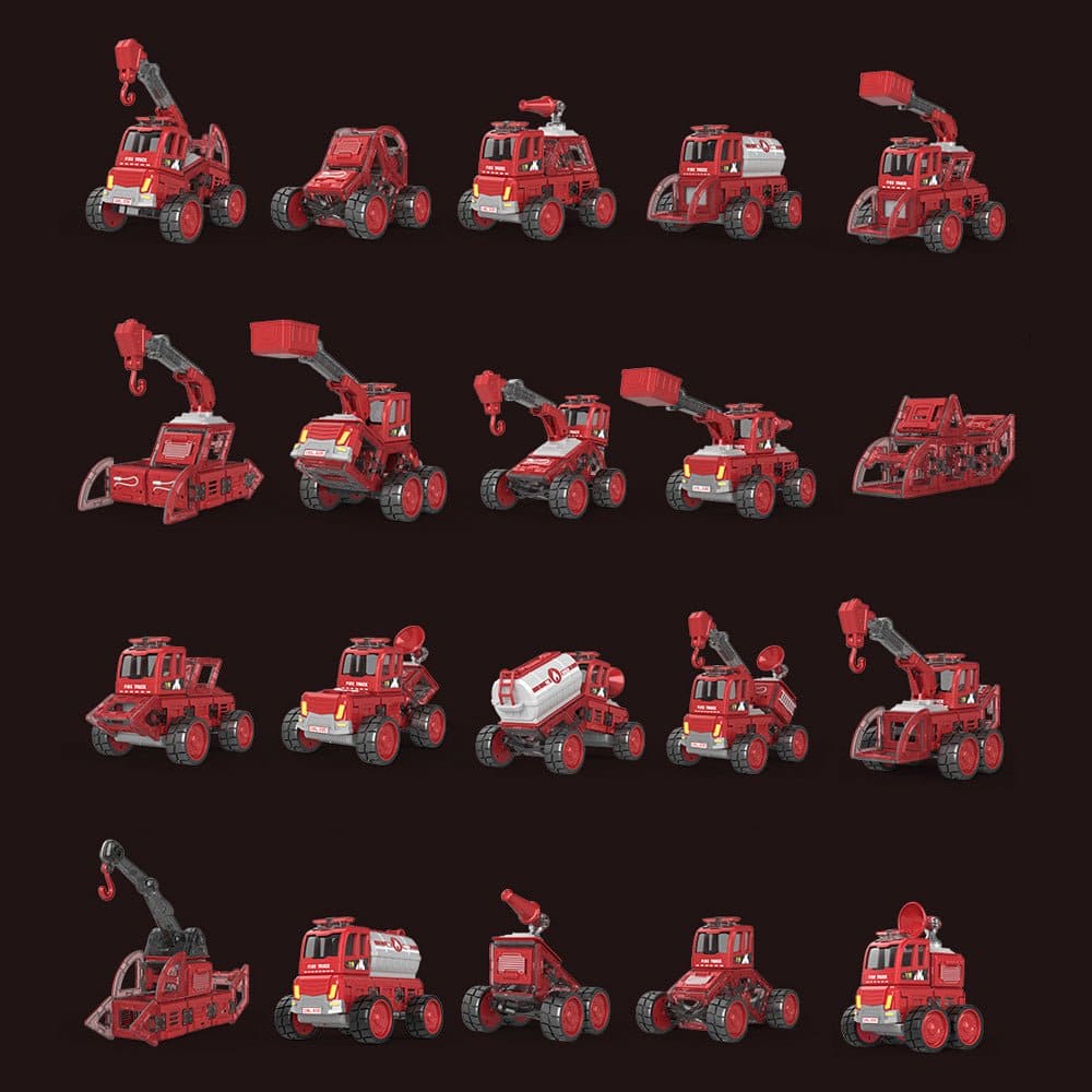DanBaoLe Magnetic Fire Truck DIY Assembly Eneineering Vehicle with Music Lights Red Christmas Gift