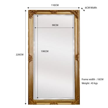 Deluxe French Provincial Ornate Mirror - Gold - X large 210cm x 110cm