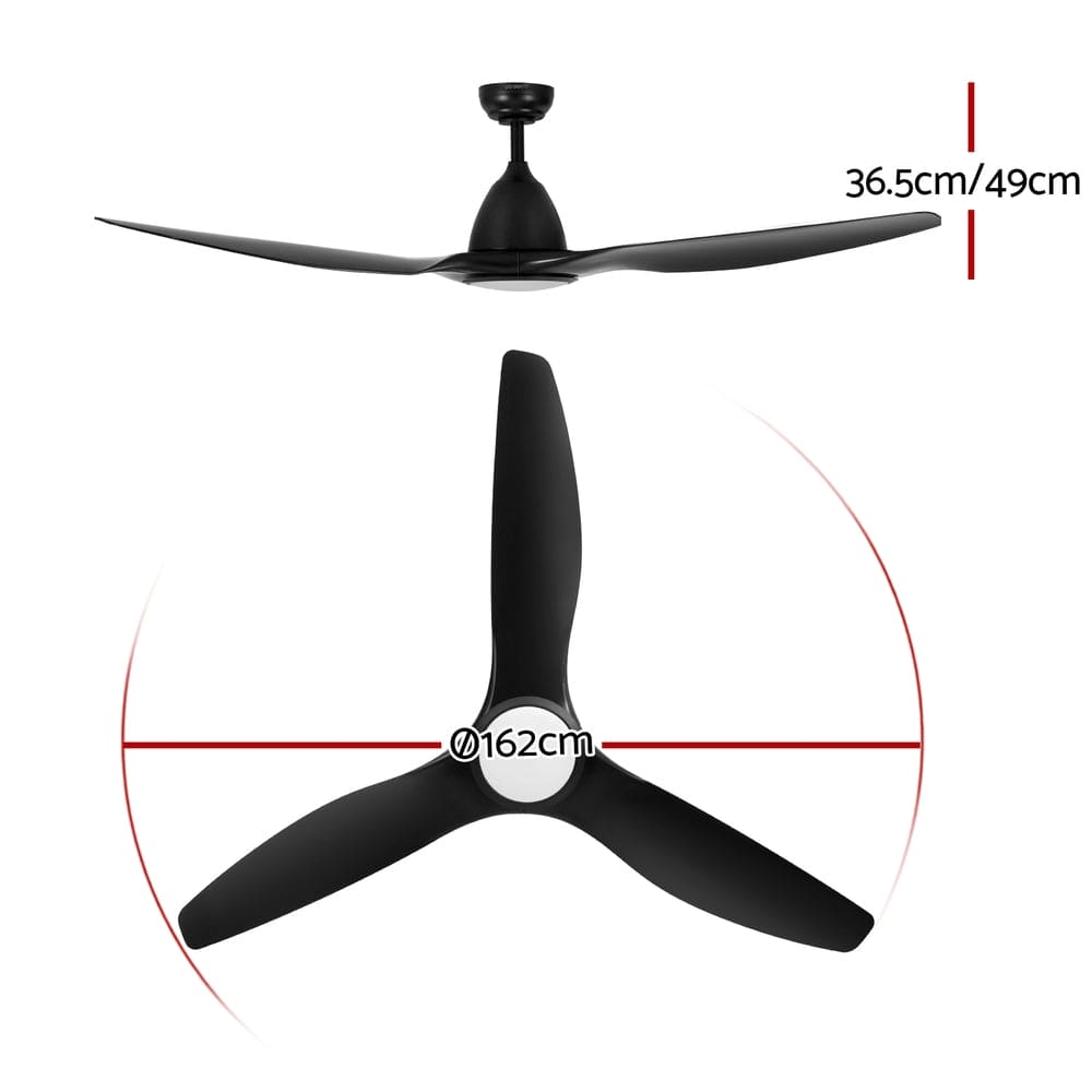 Devanti 64 Inch Ceiling Fan DC Motor w/Light w/Remote - Black