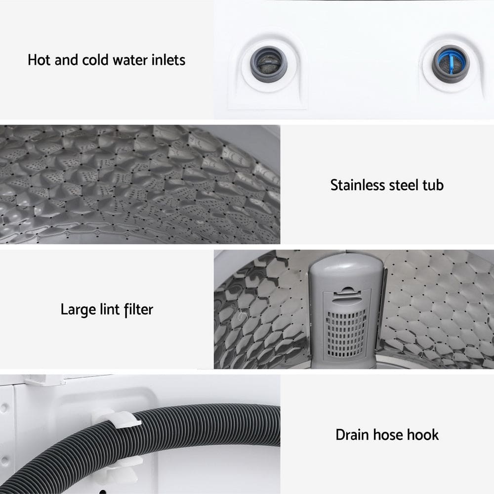 Equipped with a digital control panel and time remaining display, this washing machine gives you full control over your laundry. The stainless steel tub is built to last, and the large lint filter ensures easy maintenance. Additional features like the safety child lock, hose hook for storage, and overheating control make it a reliable and safe choice for any household.