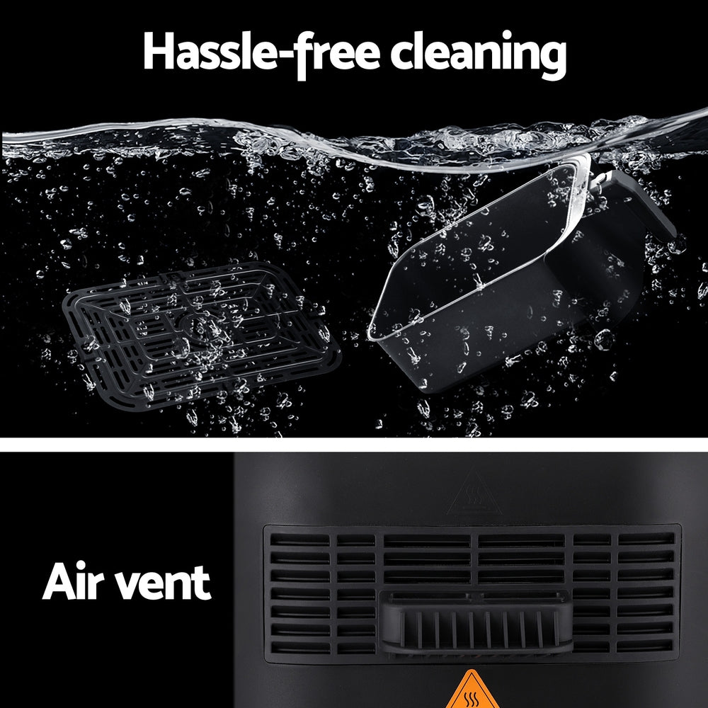 Enjoy your favourite fried foods without guilt thanks to the Devanti 8L Air Fryer. With its smooth and stunning sleek exterior, the Devanti Air Fryer turns ordinary food into extraordinary dishes thanks to their exceptional cooking abilities. With its innovative air frying technology and 1700W of power, you can cook quickly and efficiently. The 8L capacity and 7 cooking presets are suitable for a full set of meals from sides to mains. Better still, all this wonderful cooking is done without a drop of oil and is as delicious and succulent as your favourite fried treats. Foods cooked in our air fryer have up to 80% less fat than regular deep-fried foods. Choose the time, temperature and cooking preset with the easy-to-use LCD touch control panel. The tempered glass viewing window makes it easy to check your cooking progress. The interior features a non-stick pan for easy cleaning, a rectangular frying basket and a removable crisper tray for the ultimate crispy, crunchy experience. It also features an automatic shut-off switch, a cool touch handle, a heat shield vent, and non-slip feet for safety. Most importantly, the components are all dishwasher-safe, making cleaning as easy as pie. Get yours today and see the benefits of fat-free cooking!