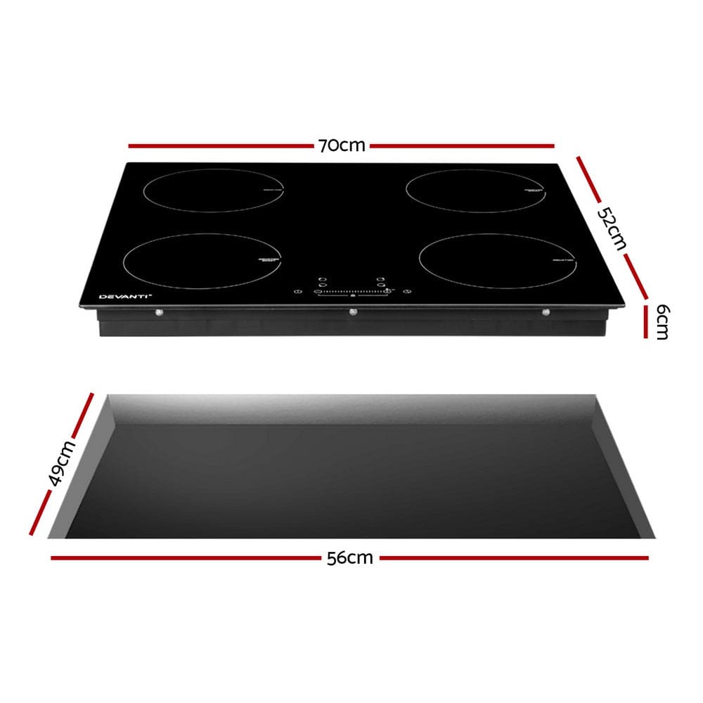 Devanti Electric Induction Cooktop 70cm Ceramic 4 Zones Stove Cook Top Hot Plate 7000W