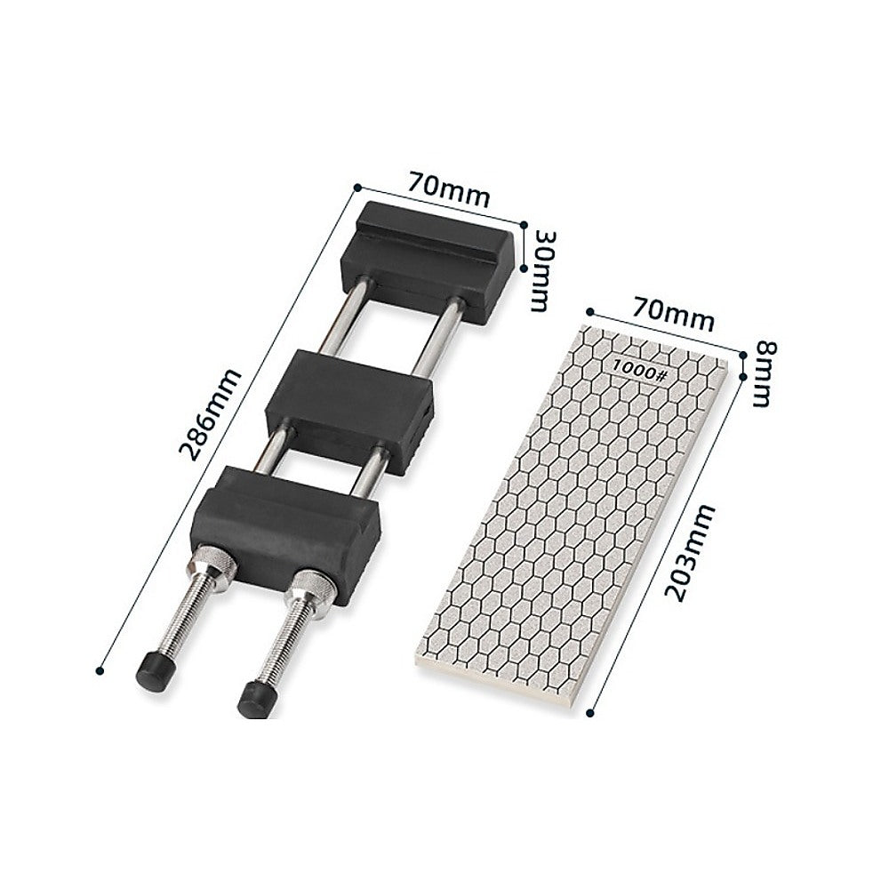 With adjustable length, the included sharpening stone holder can adjust to your exact needs. Its silicone coating prevents slipping and skidding, keeping you safe as you sharpen your knives and other tools. With a core of heavy chrome-plated iron, the sharpening stone stays in place. Chrome plating helps to prevent rust and other corrosion. The holder can accommodate stones in a wide range of sizes.