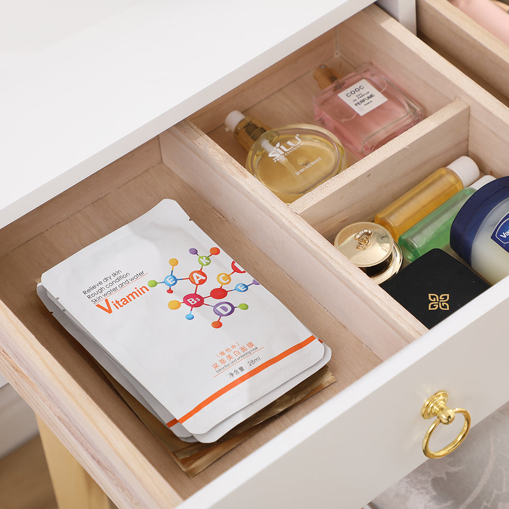 Four smooth drawers easily slide in or out with slience sliding rail.