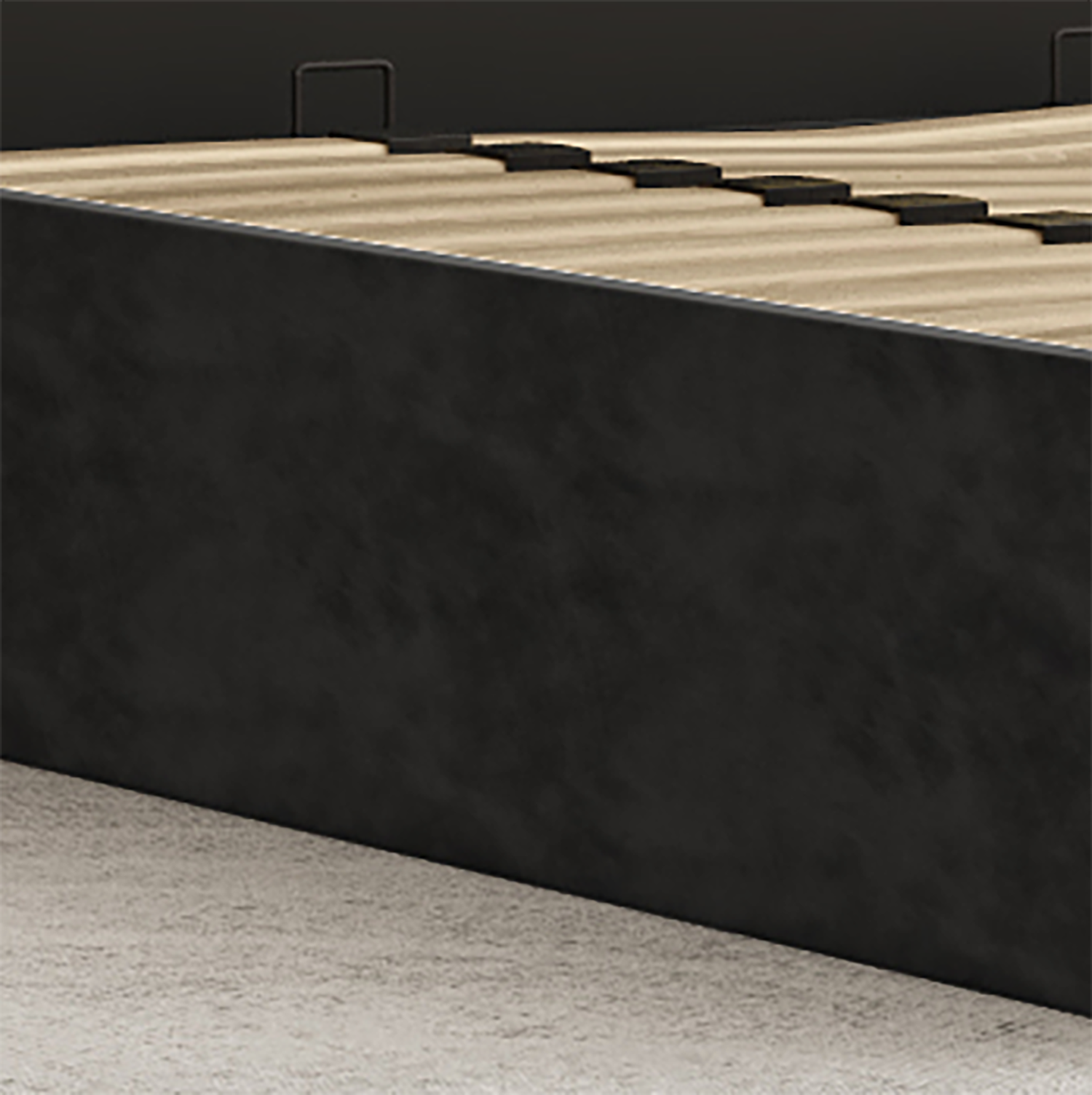 King Size Elegant Luxury Bedframe with Gas Lift Storage Charcoal Velvet Fabric Golden Trim