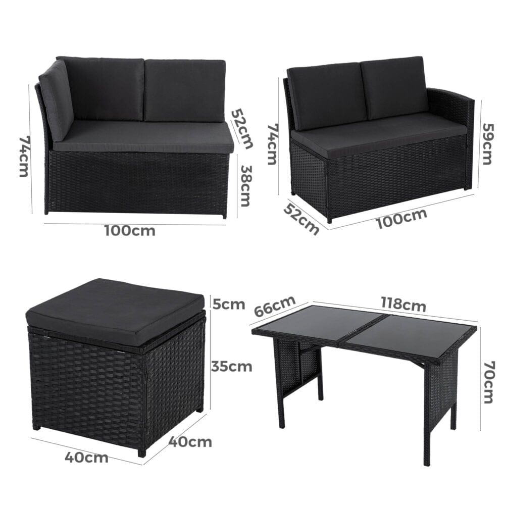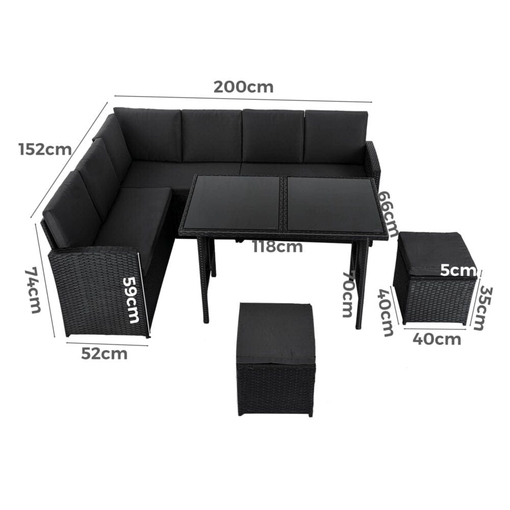 Ella 8-Seater Modular Outdoor Garden Lounge and Dining Set with Table and Stools in Black