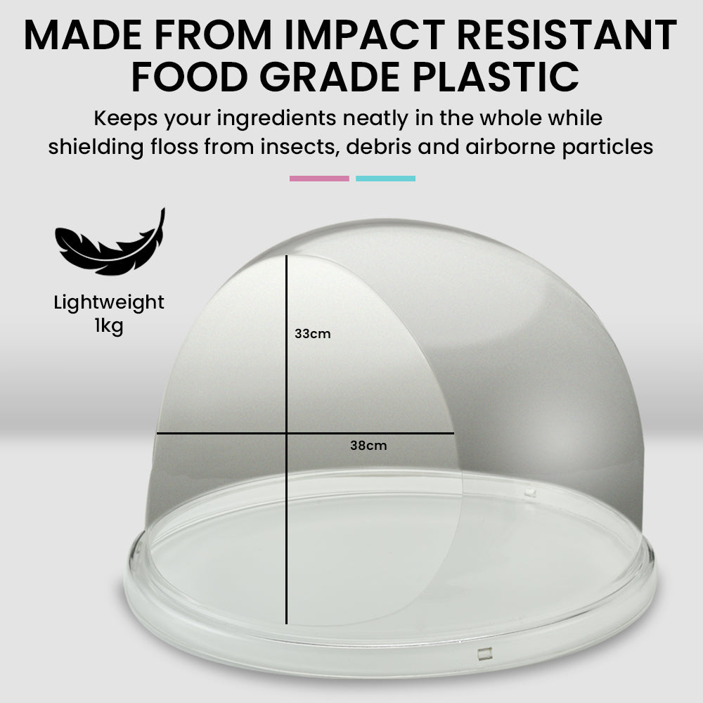 Like a window to view the delicious fairy floss as it forms, the Eurochef Commercial Fairy Floss cover is protective enough to keep the bad stuff out while ensuring everyone can watch the action as it happens. Made from lightweight yet durable, impact resistant food grade plastic the Eurochef Cover fits all 52cm dia and is the essential accessory for your Commercial Fairy Floss Machine.