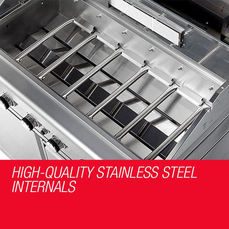 Far from just a BBQ, this state-of-the-art model will create a second kitchen in your backyard. With a massive cooking area, rotisserie, wok burner, serving tables, two cabinets and three spacious drawers, it offers everything you need to stay where the king of the BBQ belongs - by the BBQ.