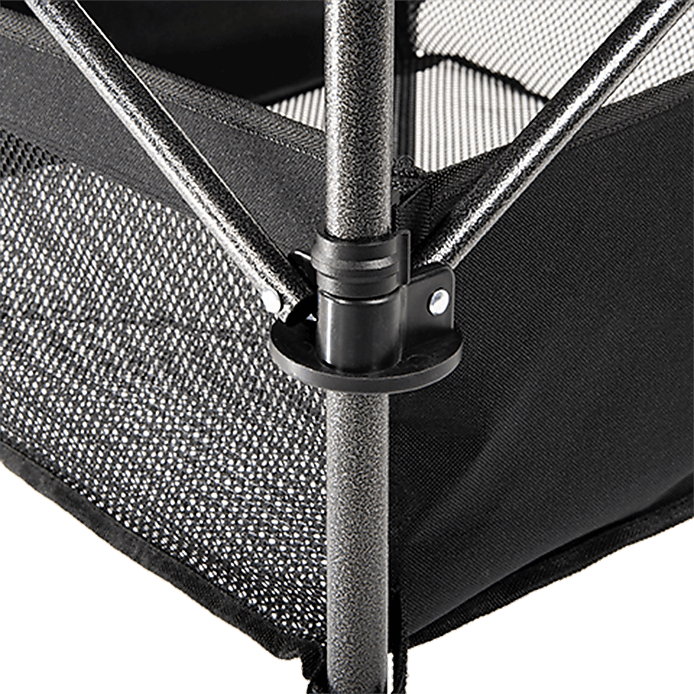 With a 100-kilogramme weight rating, this table can hold your portable stove or tabletop barbeque grill as well as your utensils and other accessories. Underneath, a storage net holds extra utensils, small coolers, cooking spray, and other smaller camping gear.