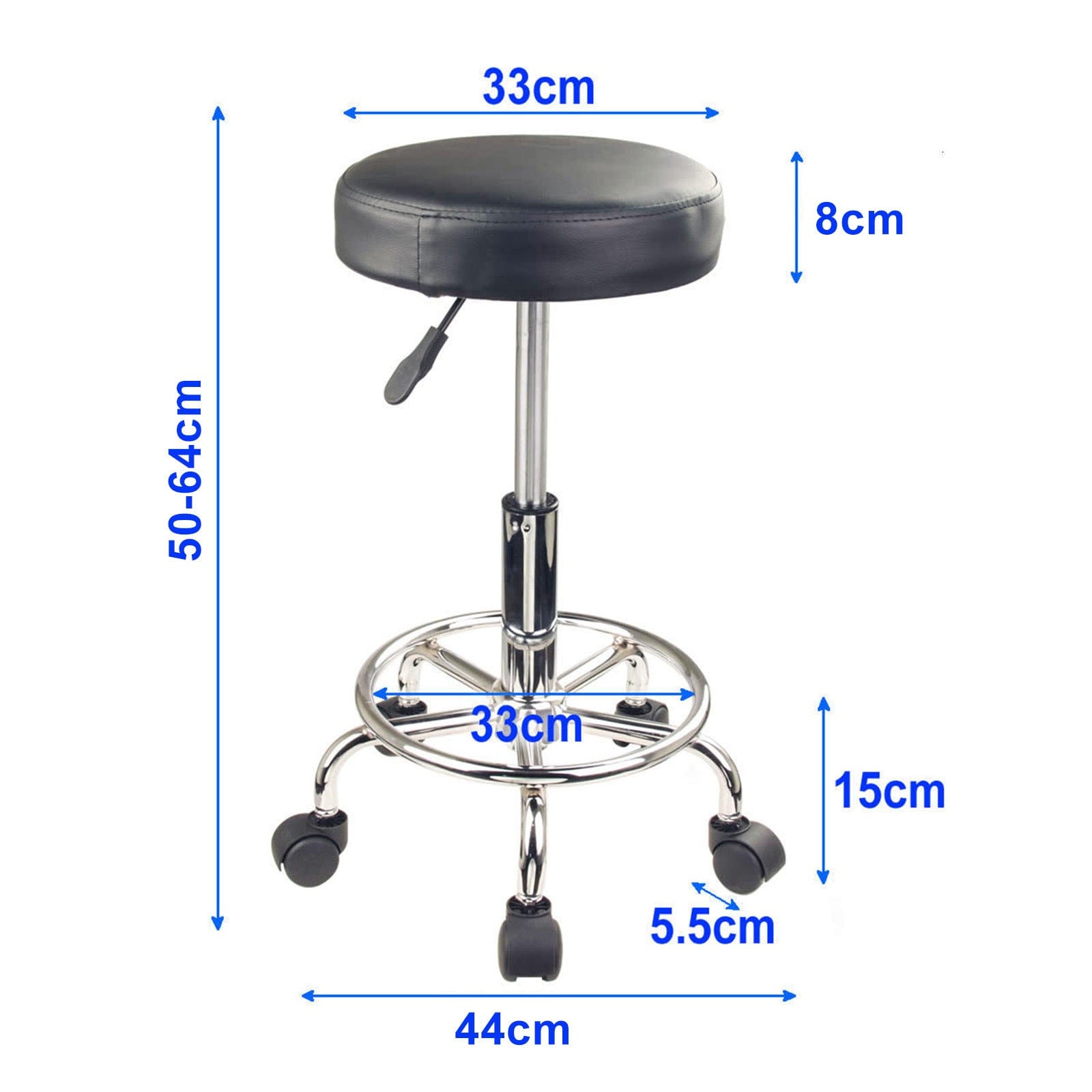 This 360-degree swivel Black Premium PU Leather Hydraulic Rolling Stool is perfect for your home, massage practice, hair salon and many more applications!
