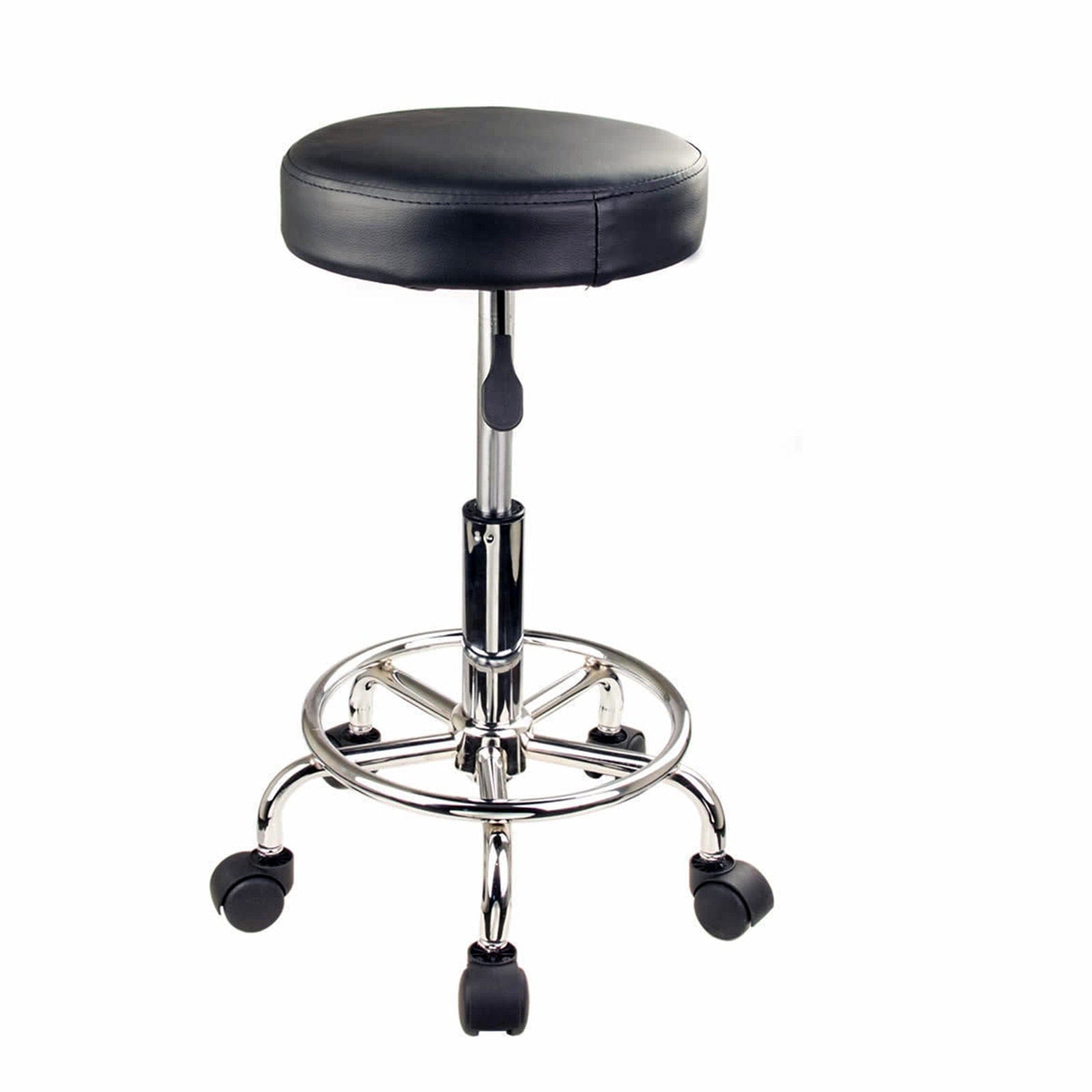 This 360-degree swivel Black Premium PU Leather Hydraulic Rolling Stool is perfect for your home, massage practice, hair salon and many more applications!
