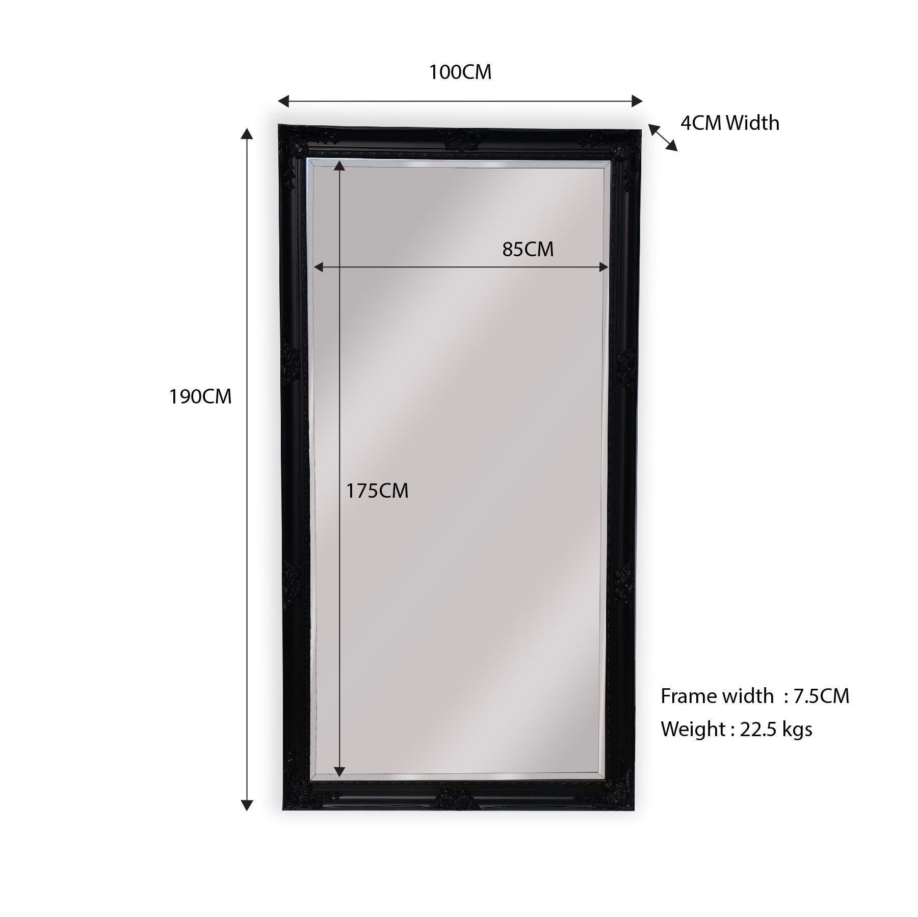French Provincial Ornate Mirror - BLACK - X Large 100cm x 190cm