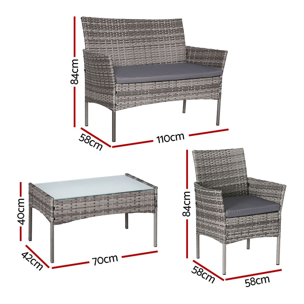 Gardeon 4 Seater Outdoor Sofa Set Wicker Setting Table Chair Furniture Grey