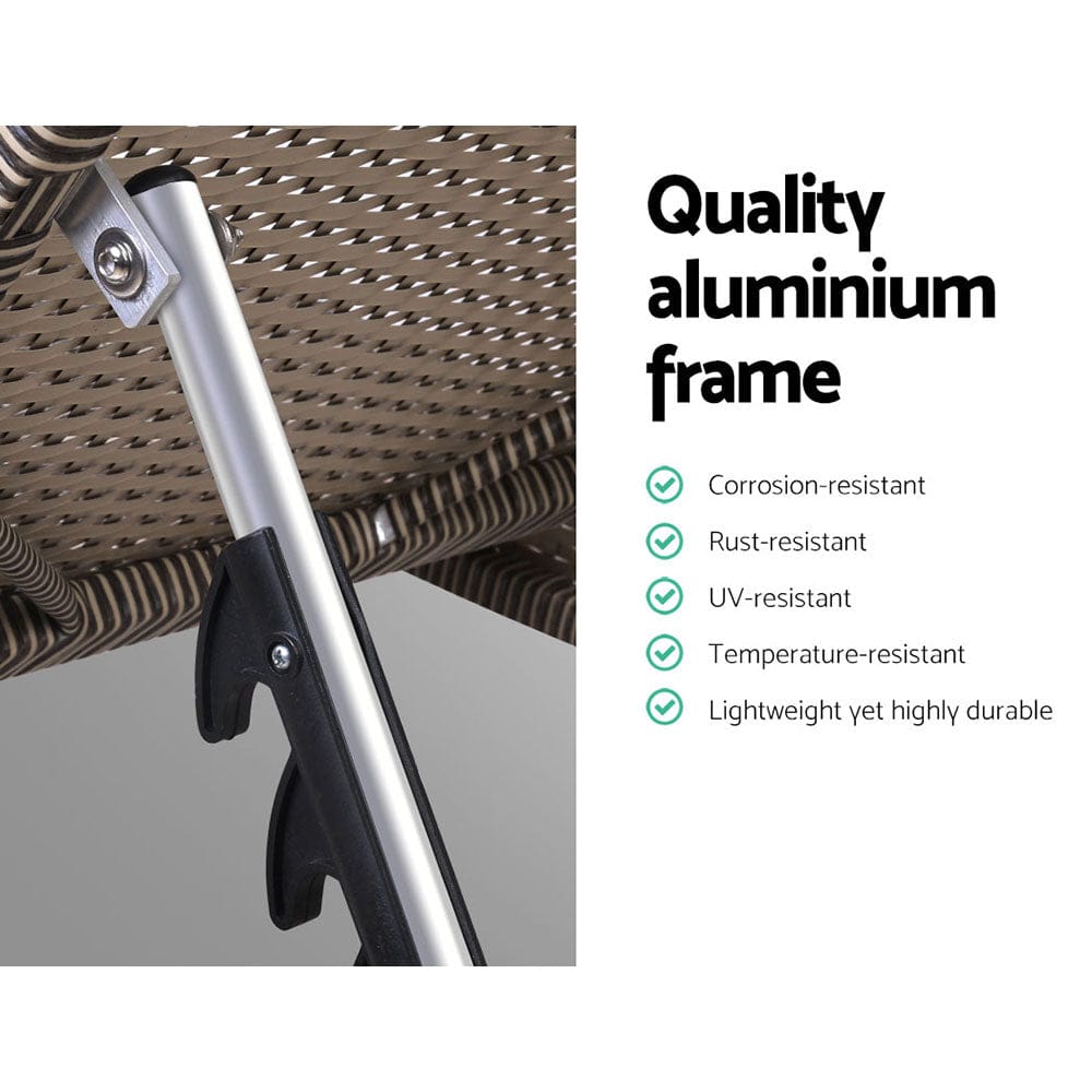 Gardeon Sun Lounge Wicker Lounger Outdoor Furniture Beach Armchair Adjustable Grey&Beige