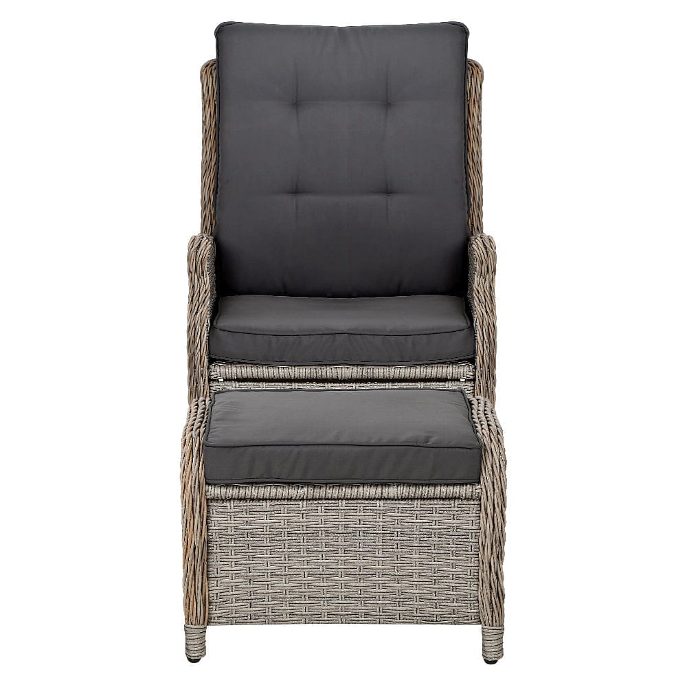 Gardeon 2PC Recliner Chair Sun lounge Wicker Lounger Outdoor Furniture Adjustable Grey