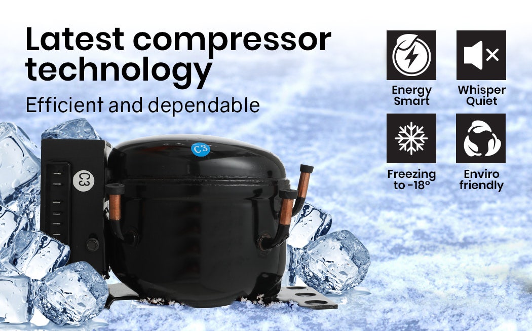 The Gecko Portable 95L Upright Refrigerator/Freezer has everything you need to enjoy fresh food and chilled beverages anytime, anywhere.