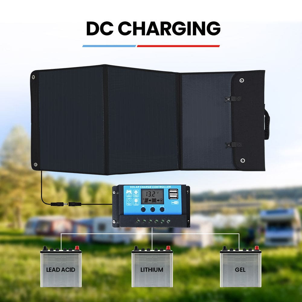The PV3100 Solar Panels feature a built in intelligent charge controller that allows you to use preset output voltages to optimise and ensure power is safely and efficiently transferred to the battery or device of your choice. The charge controller comes equipped with a 12-24V 4A 8mm DC connection to charge deep cycle, AGM and standard lead acid batteries and suits most lithium power stations. It has 2 USB-A (5V, 2.0A) ports for convenient device charging without draining your power station or battery making charging faster.