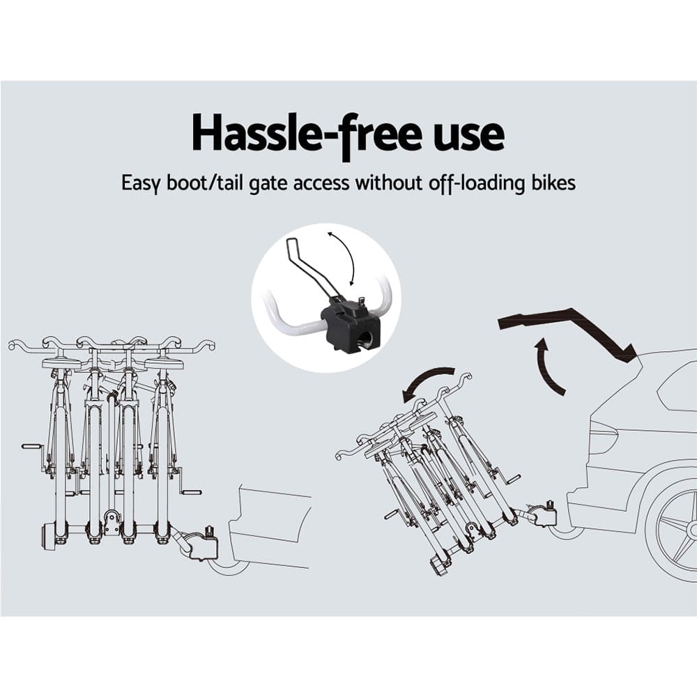 Giantz 4 Bicycle Bike Carrier Rack Car Towbar Hitch Ball Mount Tail light Silver