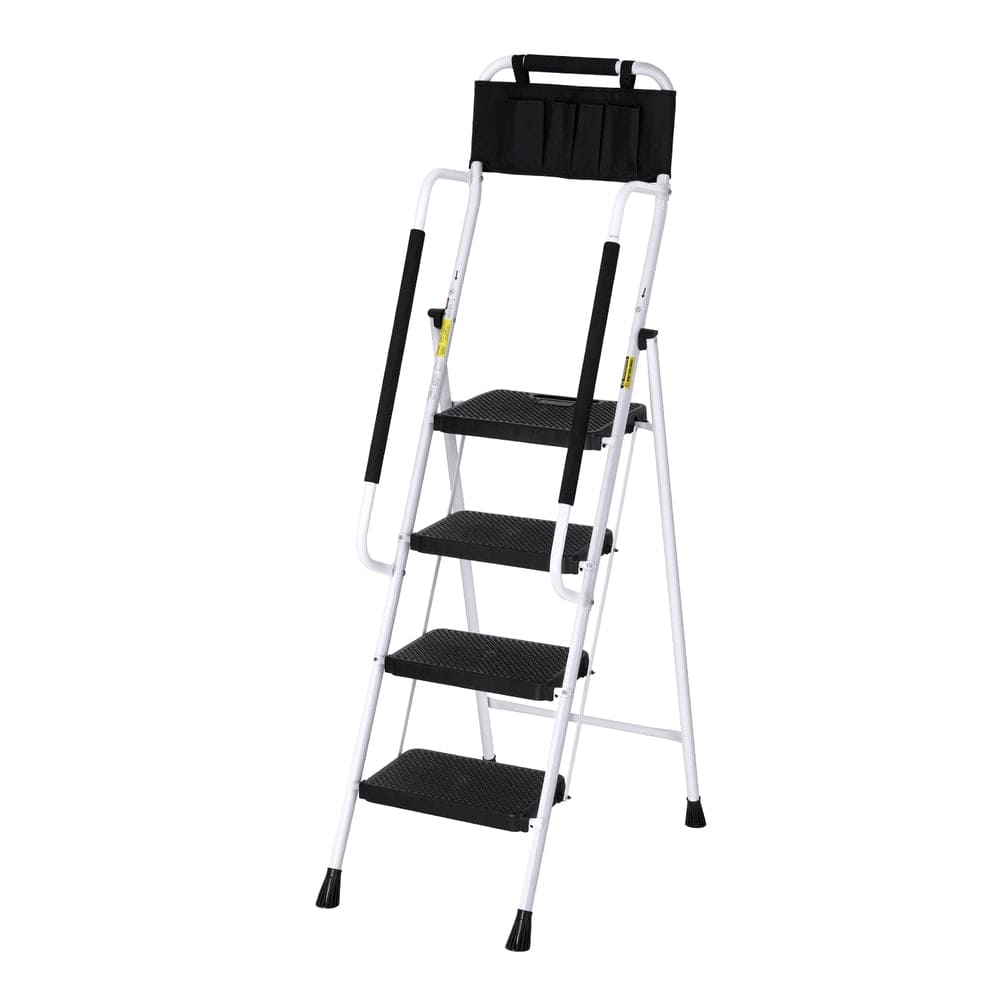 Climb your way to the top with the Giantz 4-step Ladder. Made from a lightweight steel construction, the step ladder is easy to carry but incredibly stable. The secure design and additional bracing make the step ladder extra safe and stable when working at height. It features a non-slip tread on each step, a foam easy-grip safety handle, two side handrails and non-slip rubber feet to prevent slipping and floor damage. With a tool bag ready and in reach, you'll never be stuck without your essential tools for the job.The ladder folds down easily, so you can slip it into any storage space. It is easy to carry and suitable for all kinds of odd jobs on any surface, indoors or outdoors. No matter what needs work around your home, have a Giantz 4-step Ladder at the ready!
