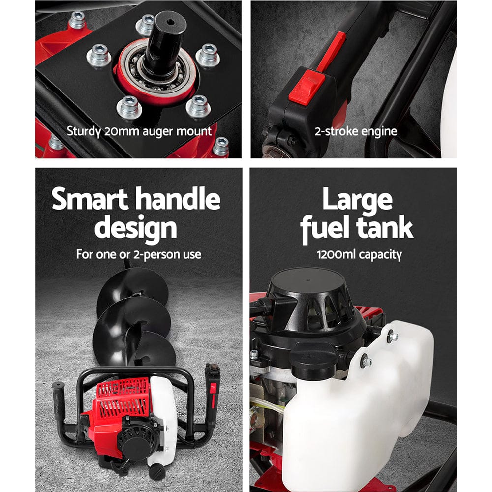 Giantz 80CC Post Hole Digger 300mm Petrol Drill Extension Auger Bits