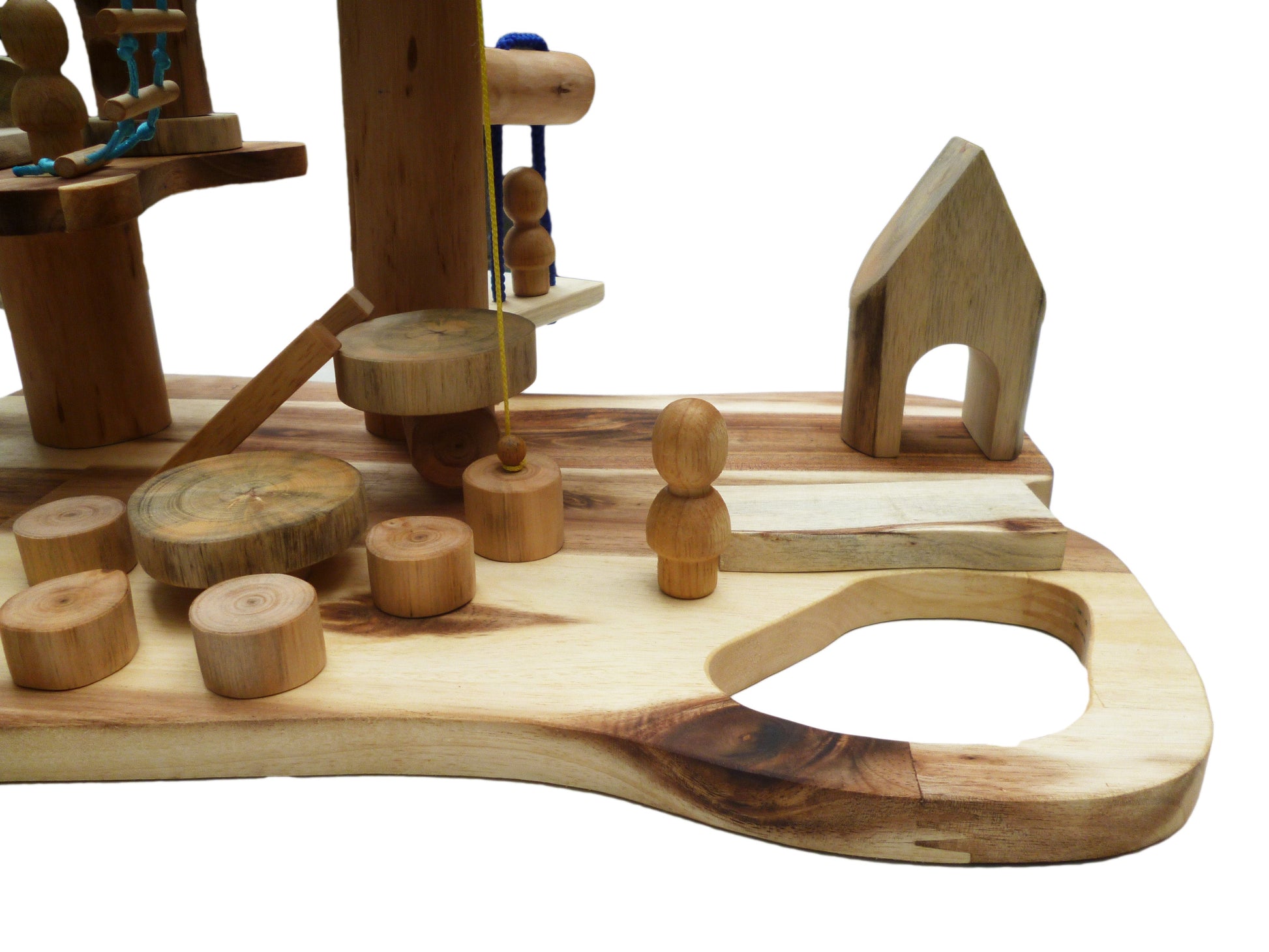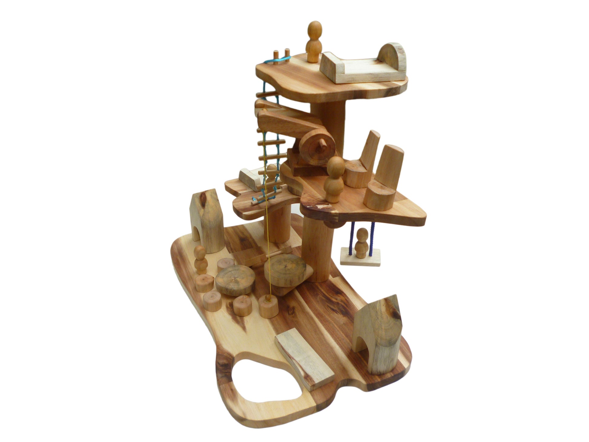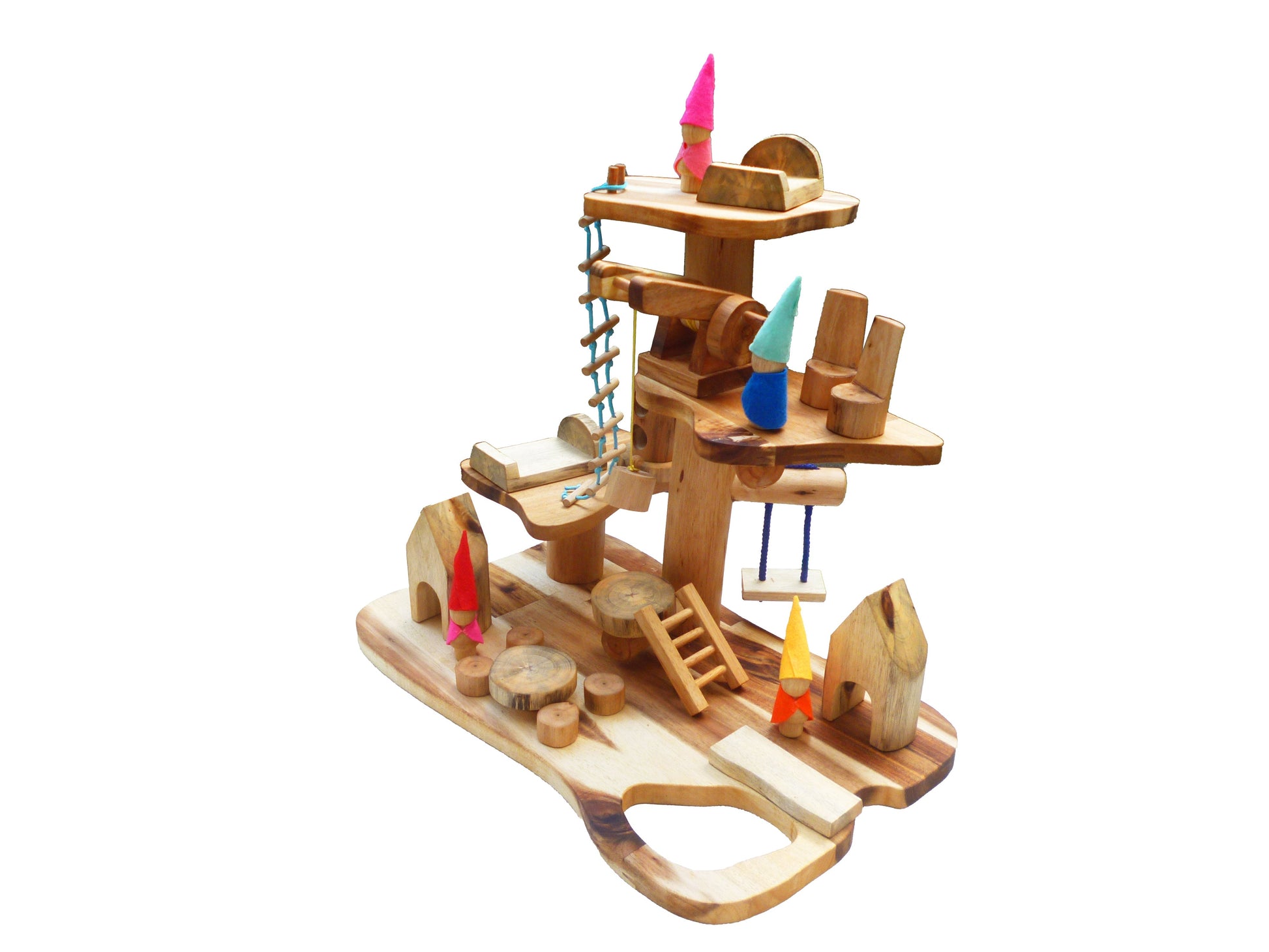 The multi levelset comes with 4 wooden figues and assorted furniture.