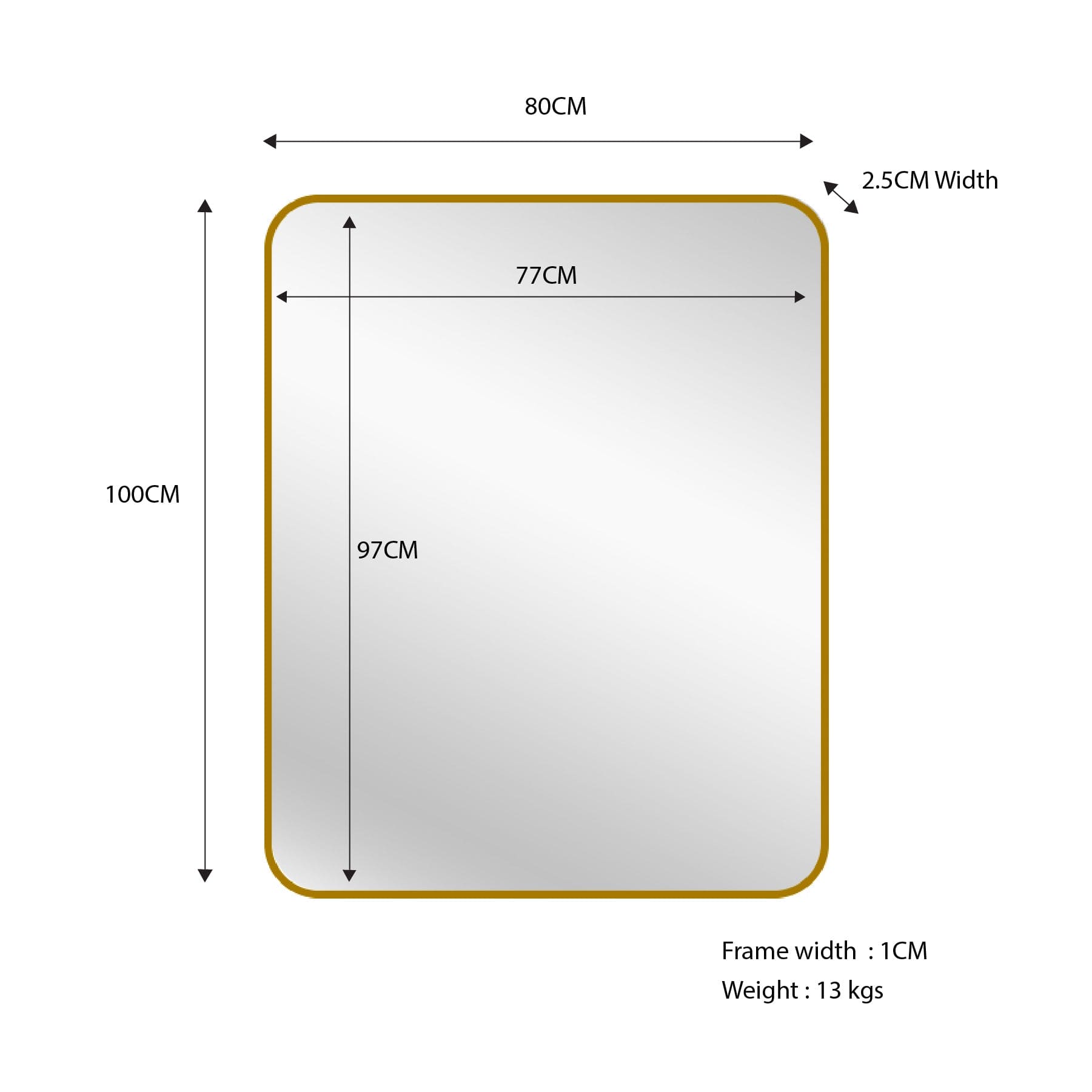 Gold Metal Rectangle Mirror - Small 80cm x 100cm