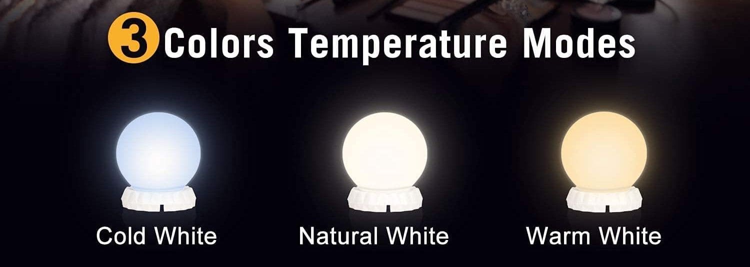 - Adjustable Color Temperature & Brightness: This vanity mirror lights kit owns 3 color modes, cold white(6500k), natural white(4000k), warm white(3000k) options meet your different needs on different occasions. 1-10 level dimming can be adjusted as you like.
