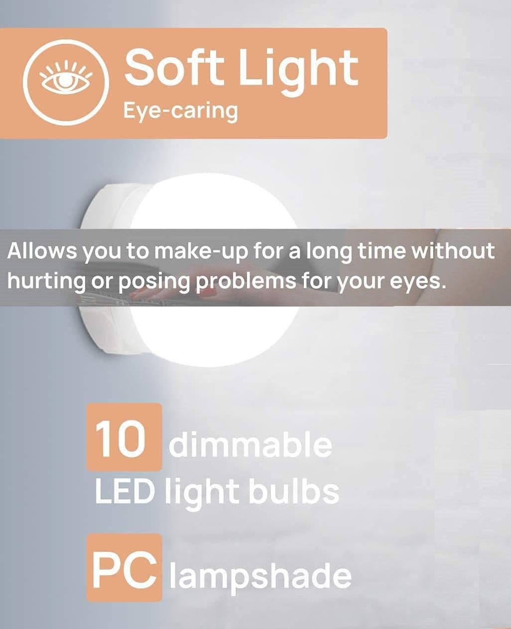 - Easy To Install & Hide Extra Wire: It only takes a few minutes to set up your own Hollywood style makeup mirror. The 3m full-length wire can be hidden into the base of the bulb by rotating the lampshade to achieve the best DIY effect and keep your mirror neat and beautiful. The USB cable design supports multiple charging options, which is convenient for anywhere.