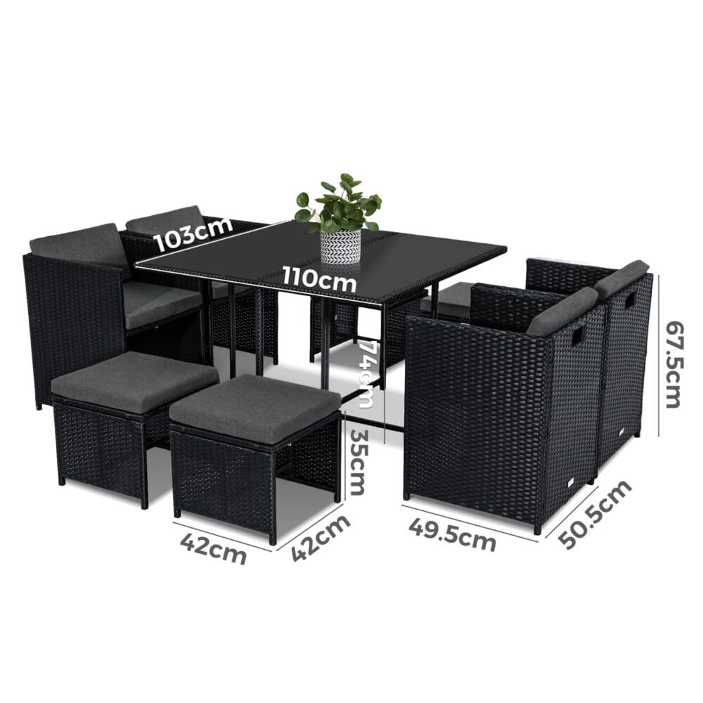 Horrocks 8 Seater Outdoor Dining Set-Black