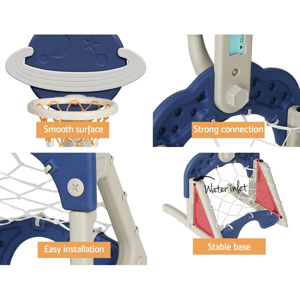 Keezi Kids Basketball Hoop Stand Adjustable 6-in-1 Sports Center Toys Set Blue