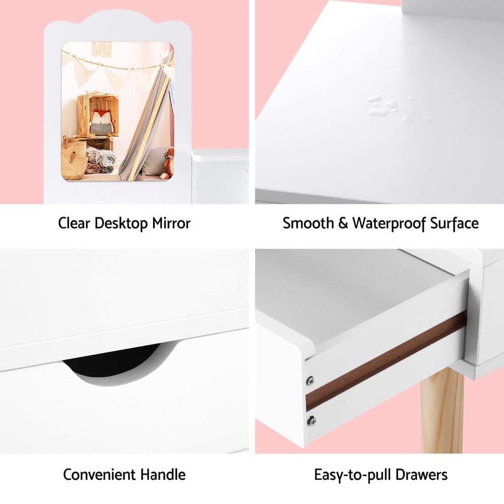 Keezi Kids Dressing Table Vanity Makeup Chair Set with Mirror Drawers Wooden Legs